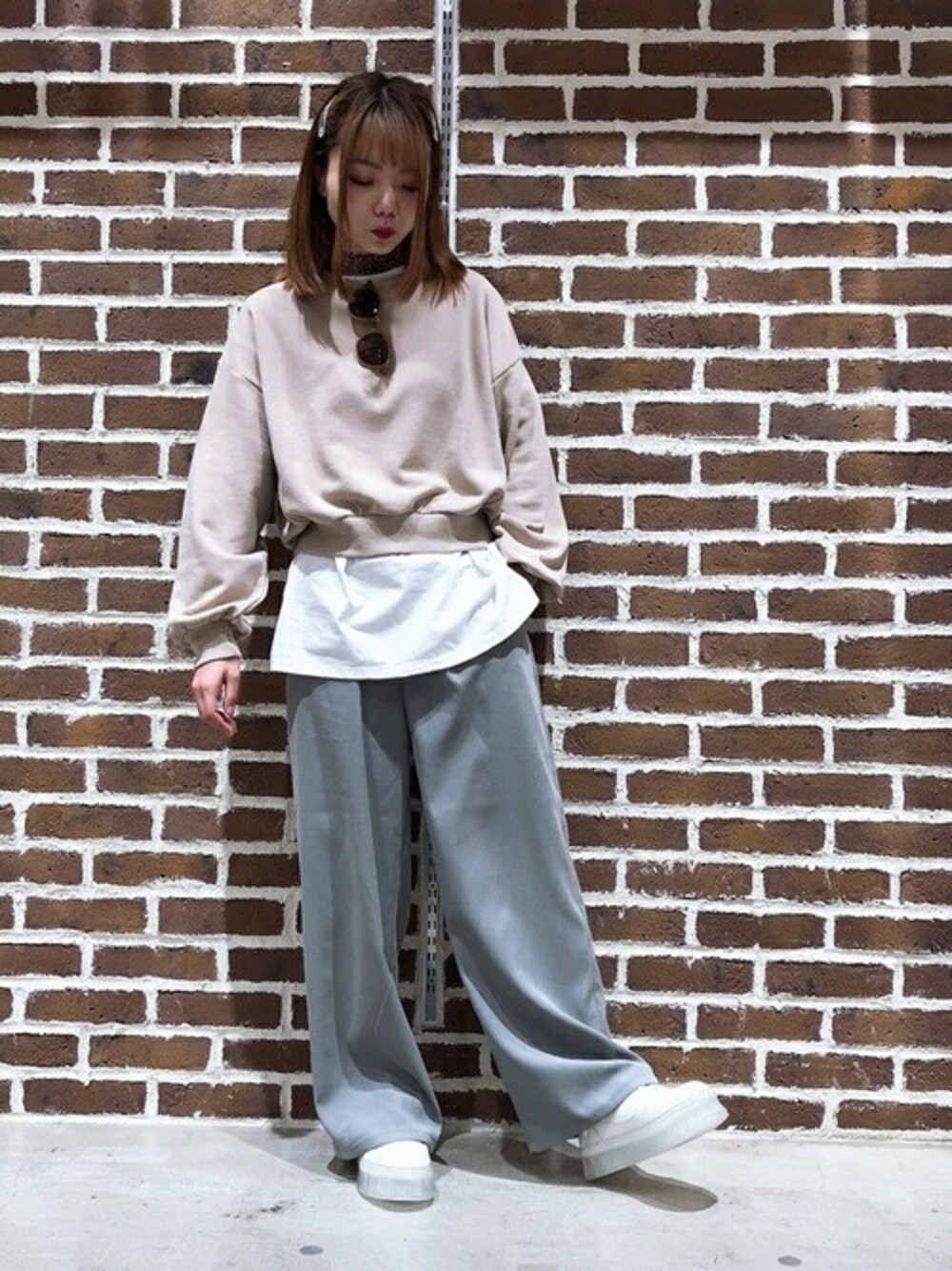 WEGO(WEGO STAFF)のスウェット「WEGO/カラーショートビッグシルエットボリューム袖スウェット」を使ったコーディネート