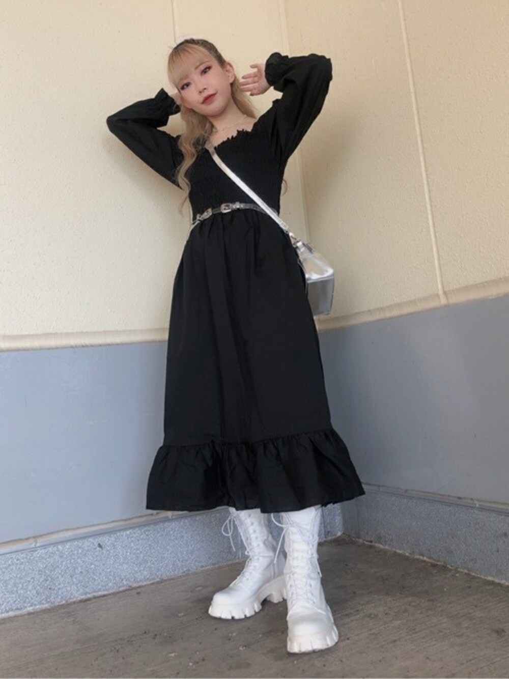 WEGO(WEGO STAFF)のワンピース「WEGO/スクエアネックフリルシャーリングワンピース」を使ったコーディネート