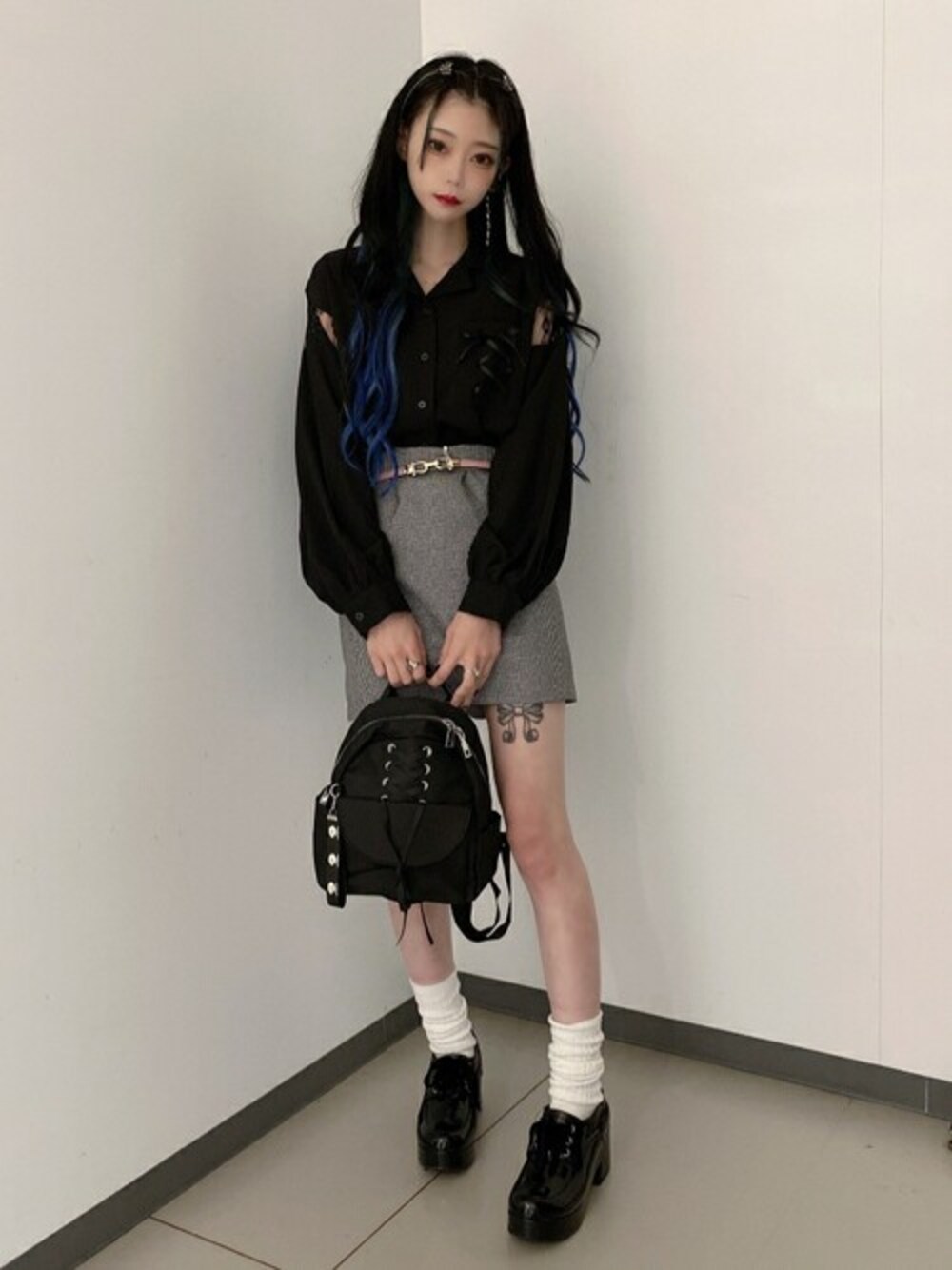 WEGO(WEGO STAFF)のシャツ/ブラウス「WEGO/レースアップオープンカラーシャツ」を使ったコーディネート