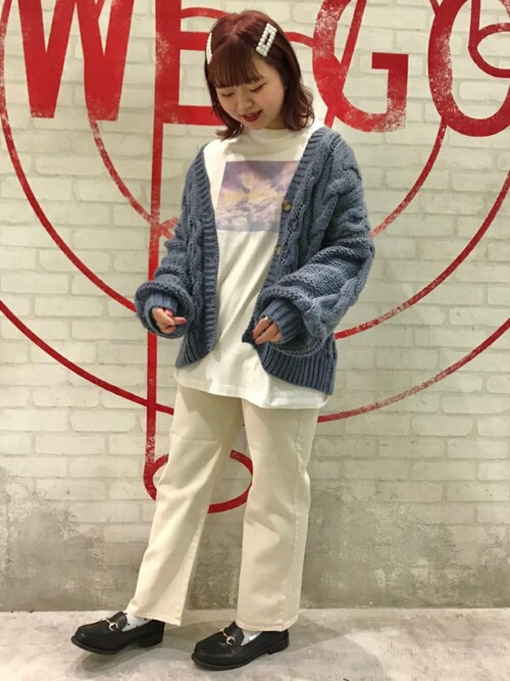 WEGO(WEGO STAFF)のカーディガン/ボレロ「WEGO/ボリューム袖ケーブルミドルカーディガン」を使ったコーディネート