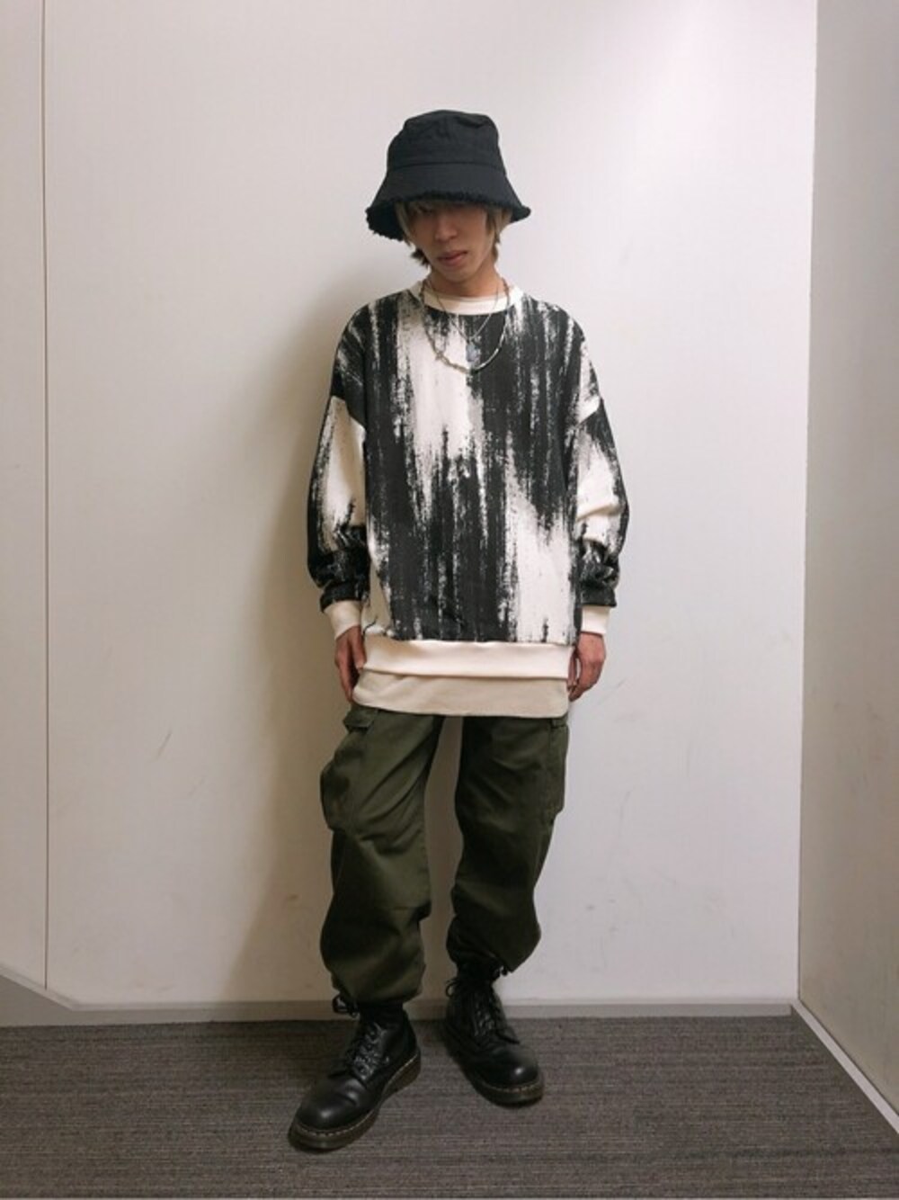 人気のカーゴシェフパンツを使用したコーデです! カラーはブラック、ホワイト、カーキ、迷彩柄の4種類ご用意してます ★毎月5のつく日は「10%OFF」WEGOZOZOTOWN限定★ 気になったアイテムはぜひお気に入り登録を♪