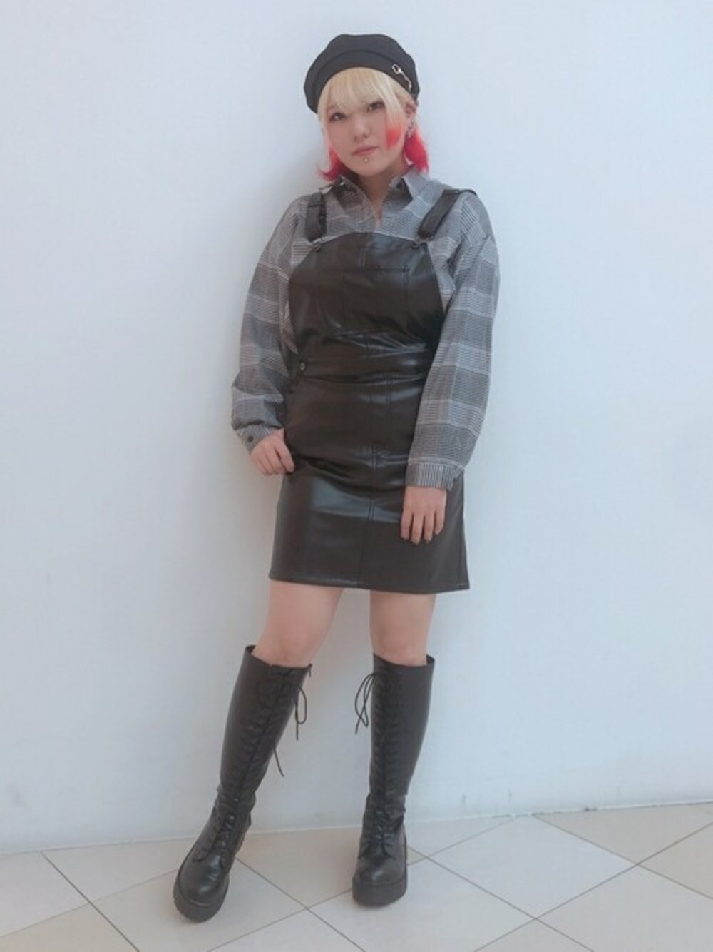 WEGO(WEGO STAFF)のジャンパースカート「WEGO/フェイクレザージャンスカ」を使ったコーディネート