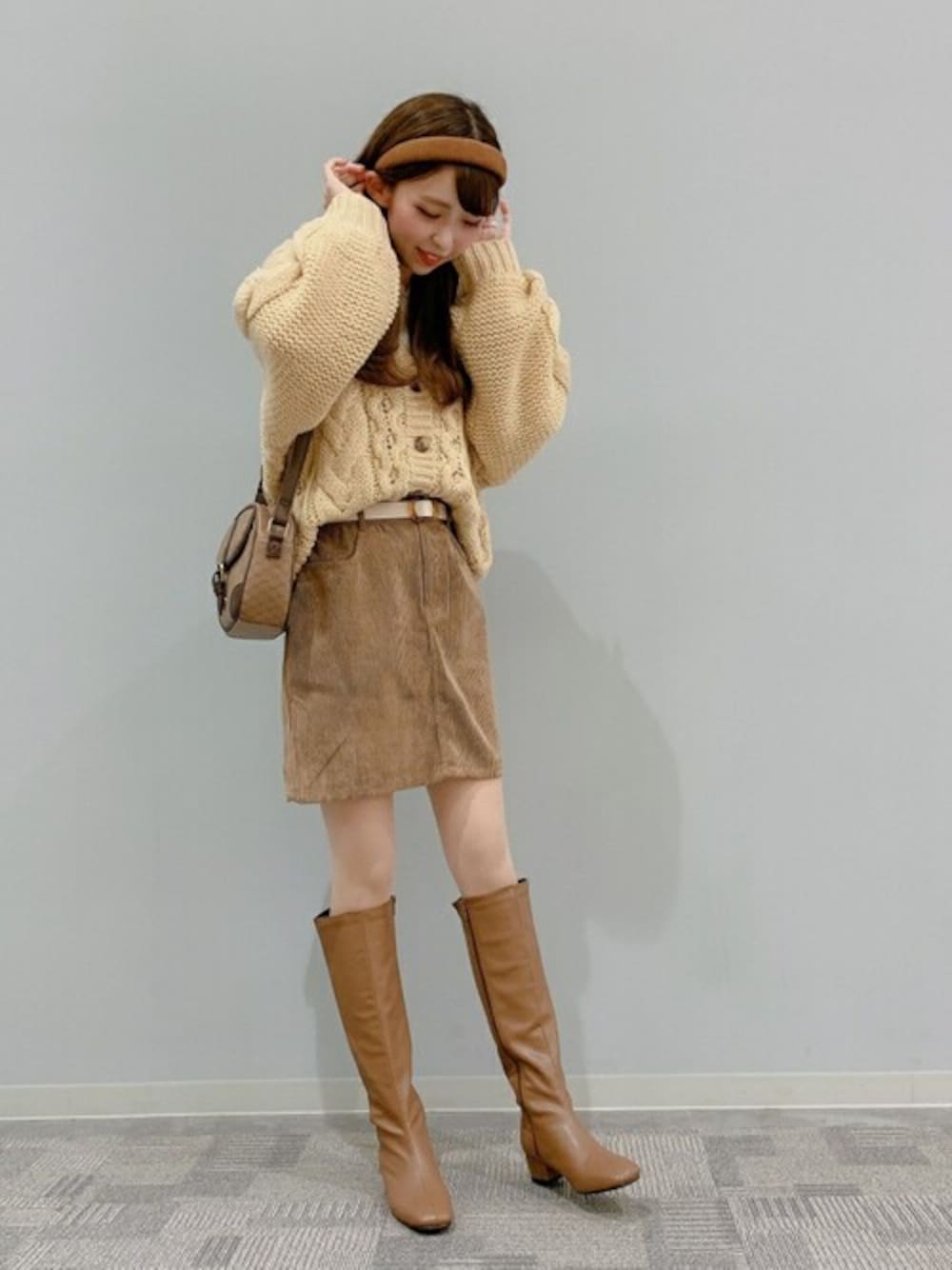 WEGO(WEGO STAFF)のカーディガン/ボレロ「WEGO/ボリューム袖ケーブルミドルカーディガン」を使ったコーディネート