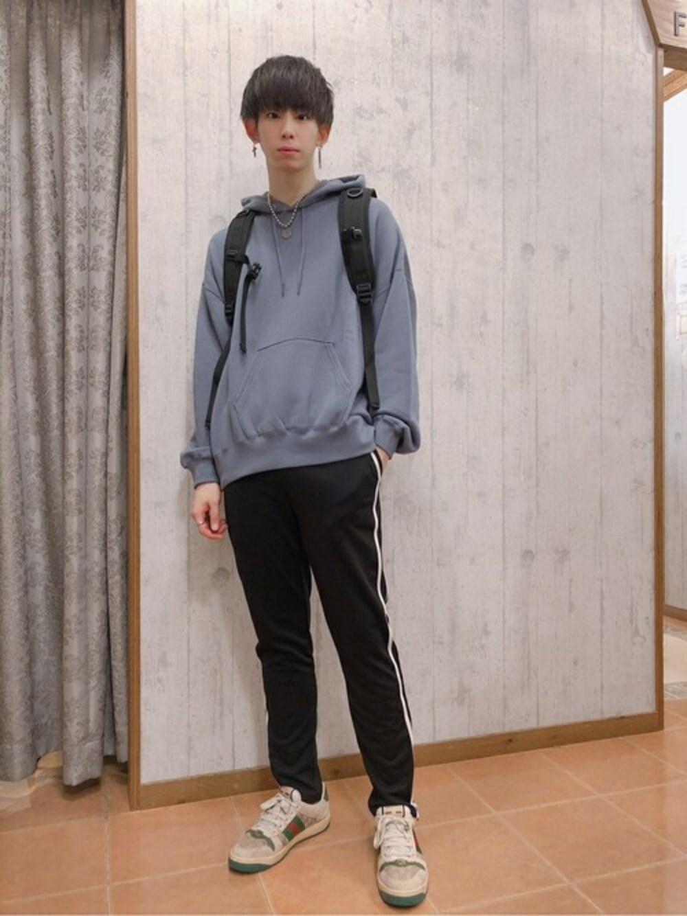 WEGO(WEGO STAFF)のスウェットパンツ「WEGO/ラインストレッチスキニーパンツ」を使ったコーディネート