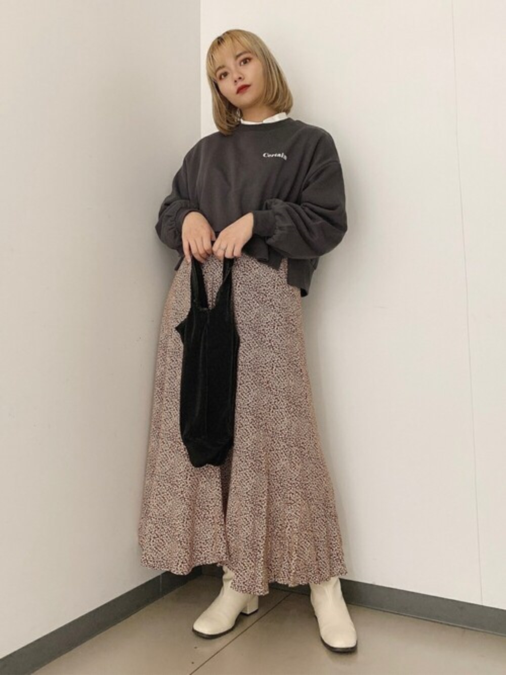 WEGO(WEGO STAFF)のスカート「WEGO/フラワープリントロングフレアスカート」を使ったコーディネート