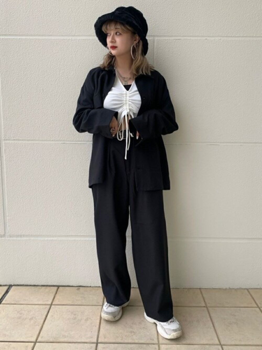 WEGO(WEGO STAFF)のハット「WEGO/リバーシブルファーボアバケットハット」を使ったコーディネート