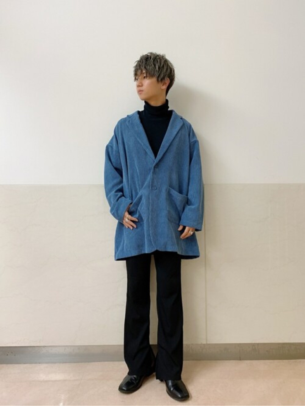 ビッグシルエットのコーデュロイテーラードジャケットは細身のボトムでシルエットを出すと◎ 綺麗なブルーなので、インナーとボトムは黒でまとめました。 ★毎月5のつく日は「10%OFF」WEGO ZOZOTOWN限定★ 気になったアイテムはぜひお気に入り登録を♪