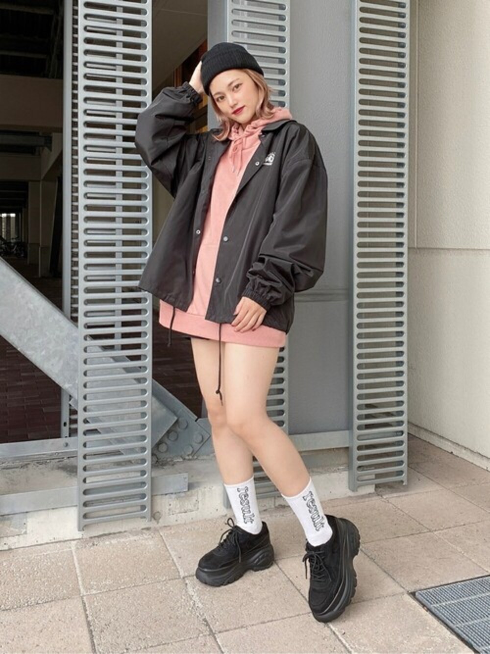 メンズのアイテムでストリートコーデ☺︎ パーカーはXLのサイズをチョイスしてワンピース風に着用しました。 ★毎月5のつく日は「10%OFF」 WEGO ZOZOTOWN限定★ 気になったアイテムはぜひお気に入り登録を♪