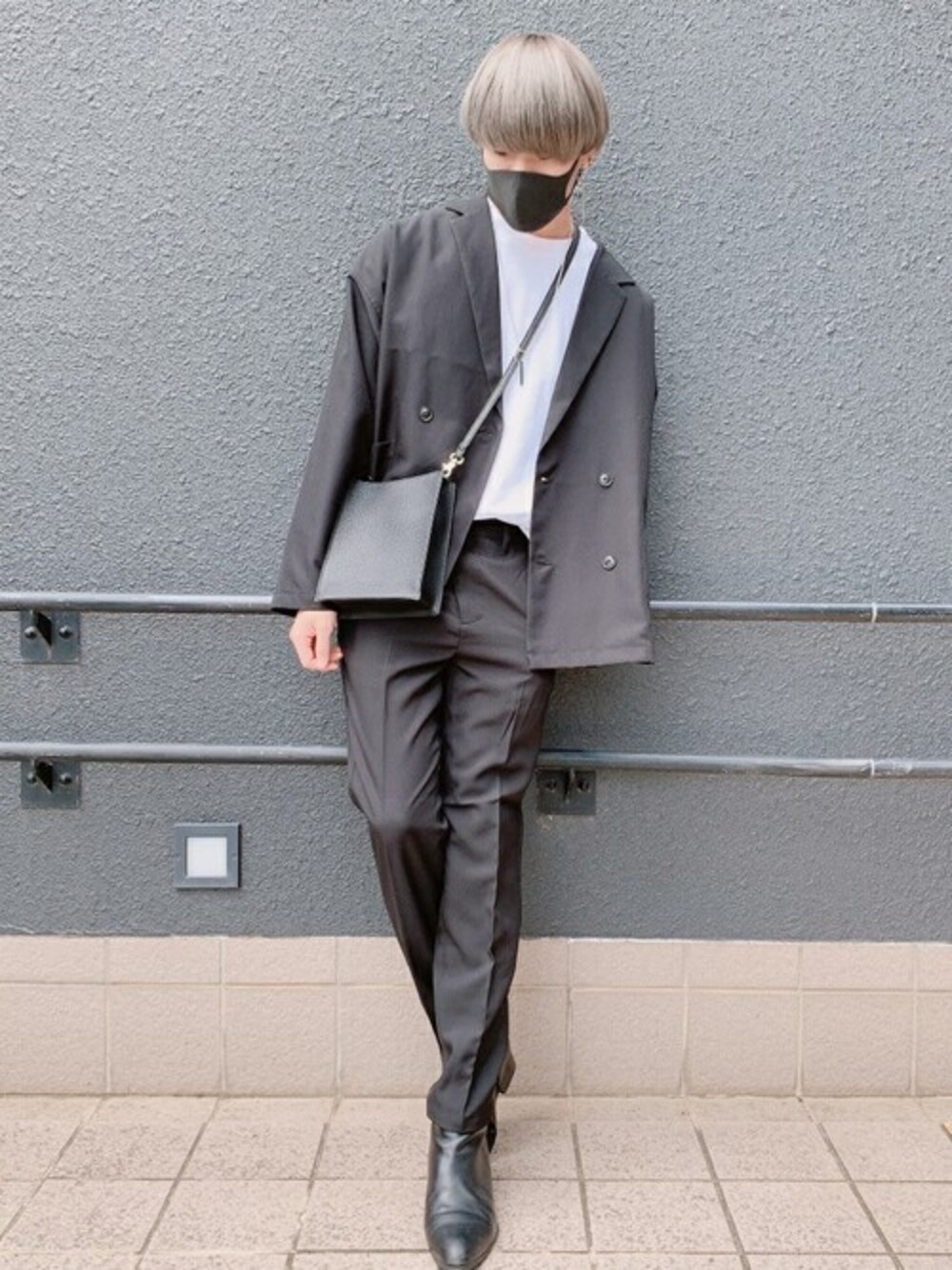 WEGO(WEGO STAFF)のテーラードジャケット「【ユニセックス】ダブル テーラード ジャケット シャツ (BG)」を使ったコーディネート
