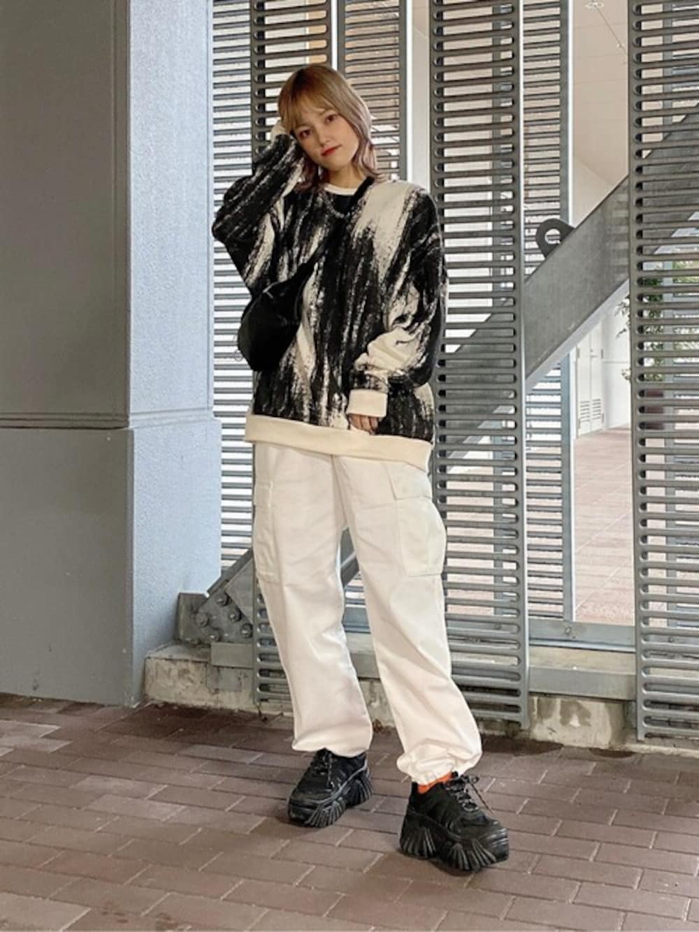 WEGO(WEGO STAFF)のショルダーバッグ「WEGO/フェイクレザーウエストバッグ」を使ったコーディネート