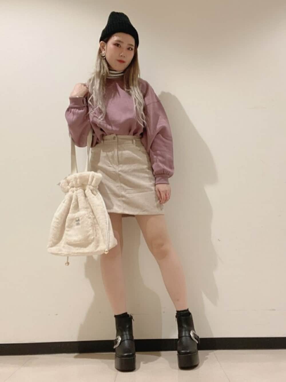 WEGO(WEGO STAFF)のトートバッグ「WEGO/ファー巾着トートバッグ」を使ったコーディネート