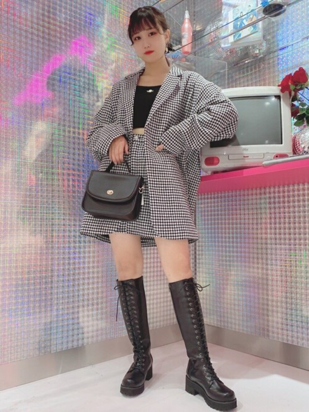 WEGO(WEGO STAFF)のチェスターコート「WC/【セットアップ対応商品】千鳥柄ビッグシルエットチェスターコート」を使ったコーディネート