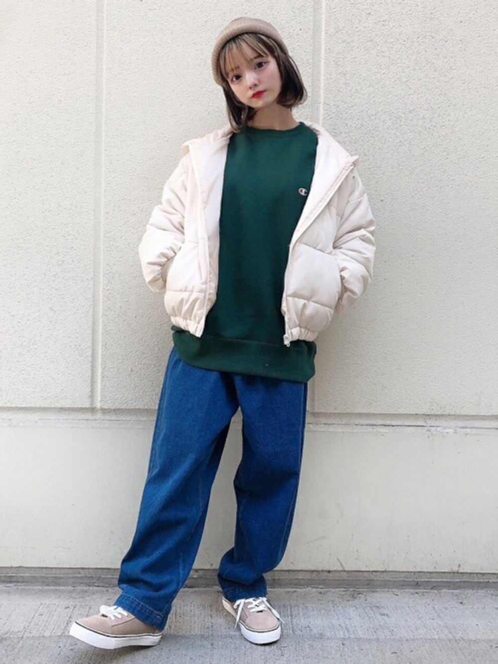 WEGO(WEGO STAFF)のスウェット「WEGO/Champion 起毛刺繍プルオーバー」を使ったコーディネート