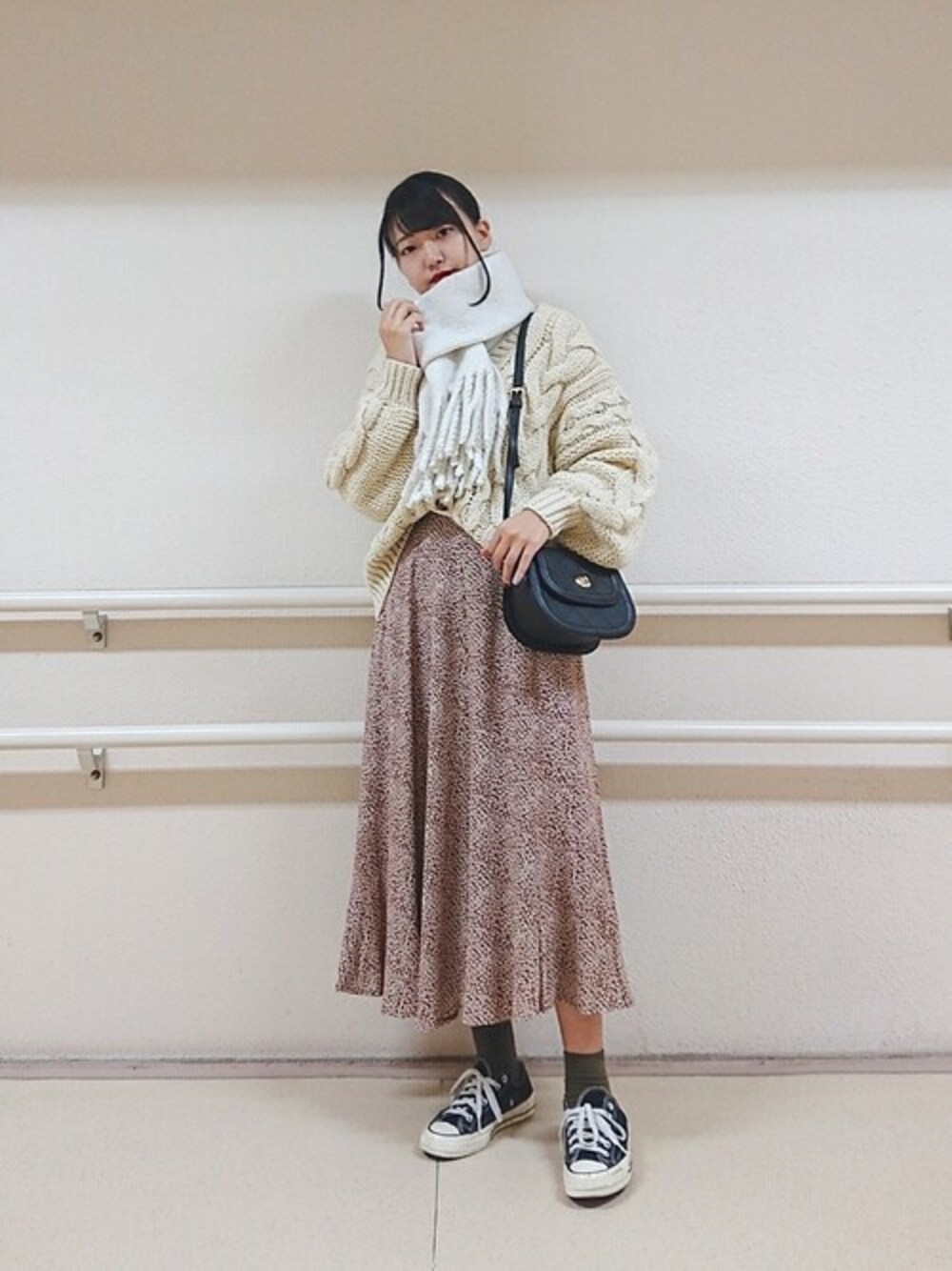 WEGO(WEGO STAFF)のカーディガン/ボレロ「WEGO/ボリューム袖ケーブルミドルカーディガン」を使ったコーディネート