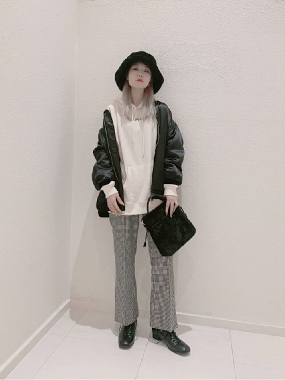 WEGO(WEGO STAFF)のナイロンジャケット「WEGO/サテンフォトブルゾン」を使ったコーディネート