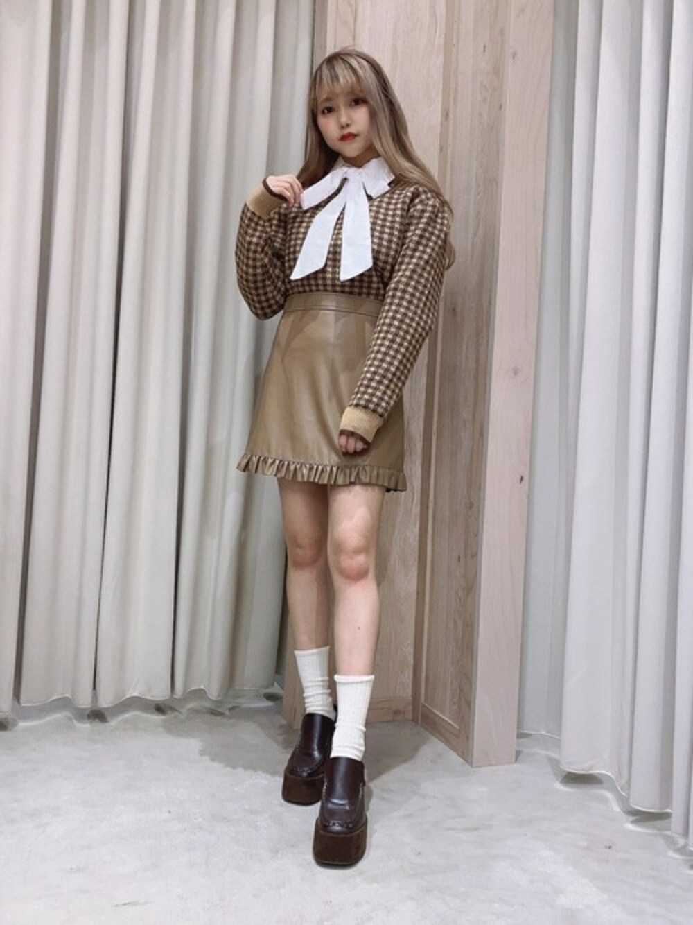 WEGO(WEGO STAFF)のスカート「WC/フェイクレザーフリルスカート」を使ったコーディネート