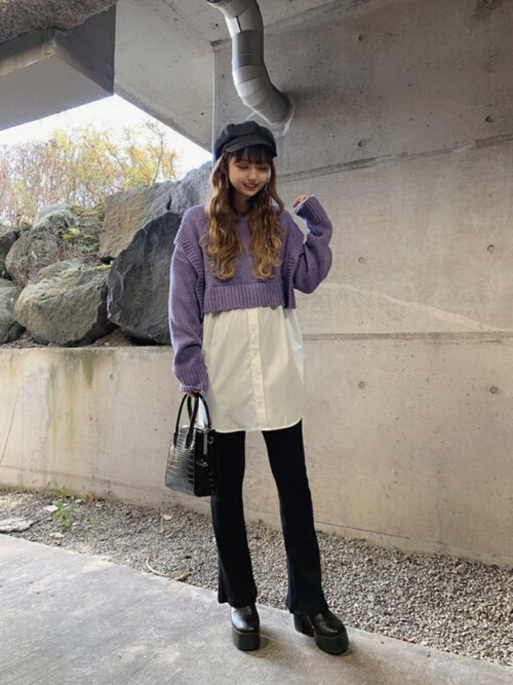 WEGO(WEGO STAFF)のショルダーバッグ「WEGO/クロコハンドルがま口ショルダーバッグ」を使ったコーディネート