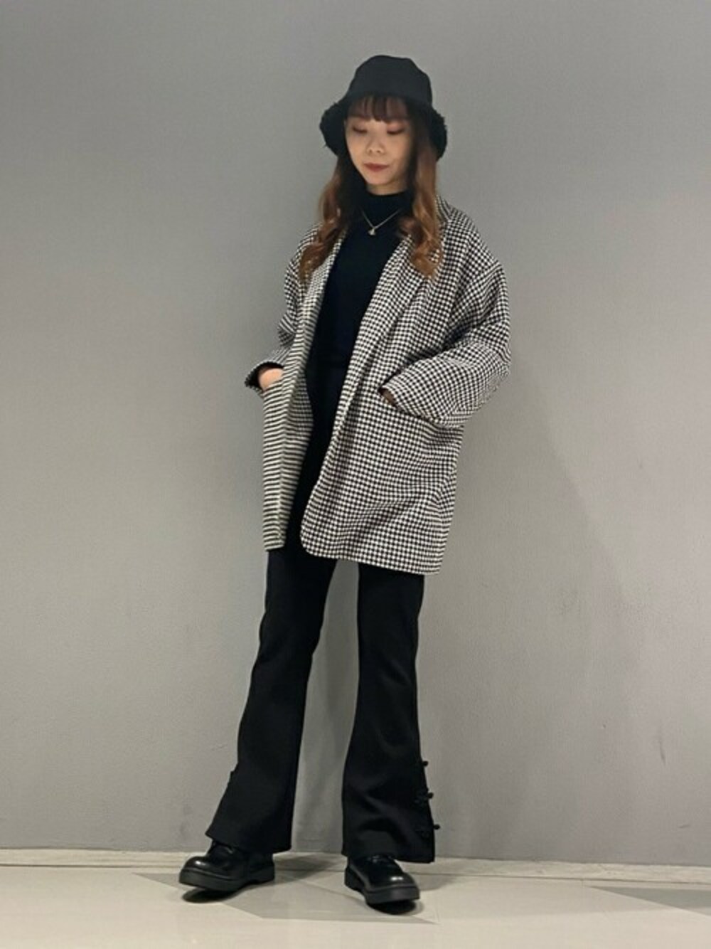 WEGO(WEGO STAFF)のチェスターコート「WC/【セットアップ対応商品】千鳥柄ビッグシルエットチェスターコート」を使ったコーディネート