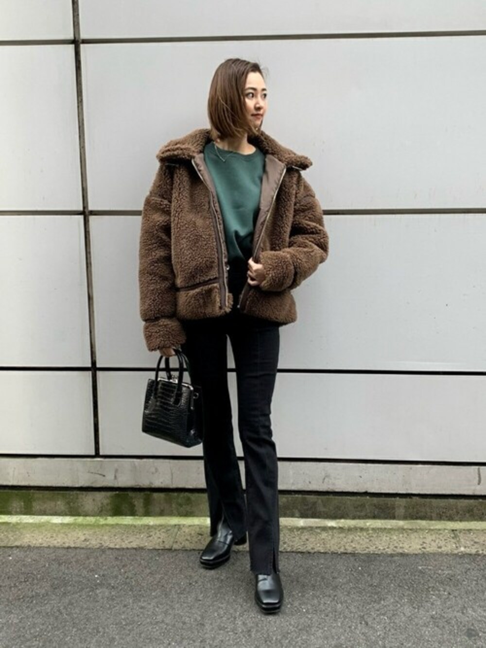 WEGO(WEGO STAFF)のショルダーバッグ「WEGO/クロコハンドルがま口ショルダーバッグ」を使ったコーディネート
