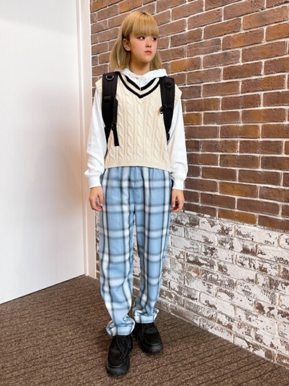 チェックパンツ×ニットベストで学生風スタイル! ■Instagram @nozomincho "★毎月5のつく日は「10%OFF」WEGOZOZOTOWN限定★ 気になったアイテムはぜひお気に入り登録を♪"