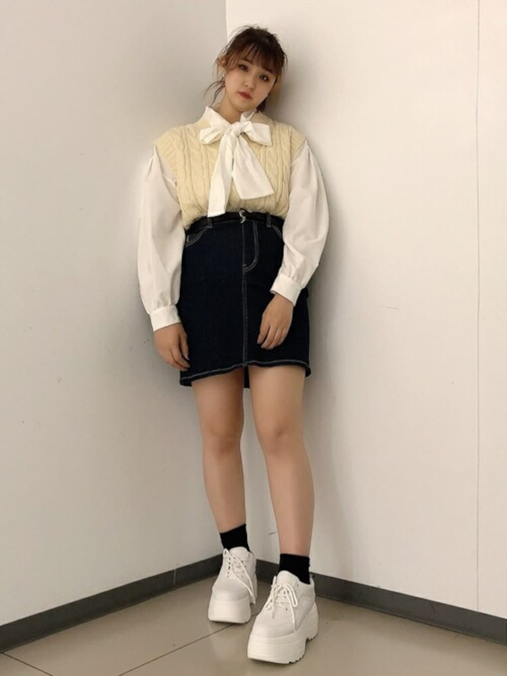 韓国風コーデ!ニットベストリボン付きブラウス可愛いです! ★毎月5のつく日は「10%OFF」WEGOZOZOTOWN限定★ 気になったアイテムはぜひお気に入り登録を♪