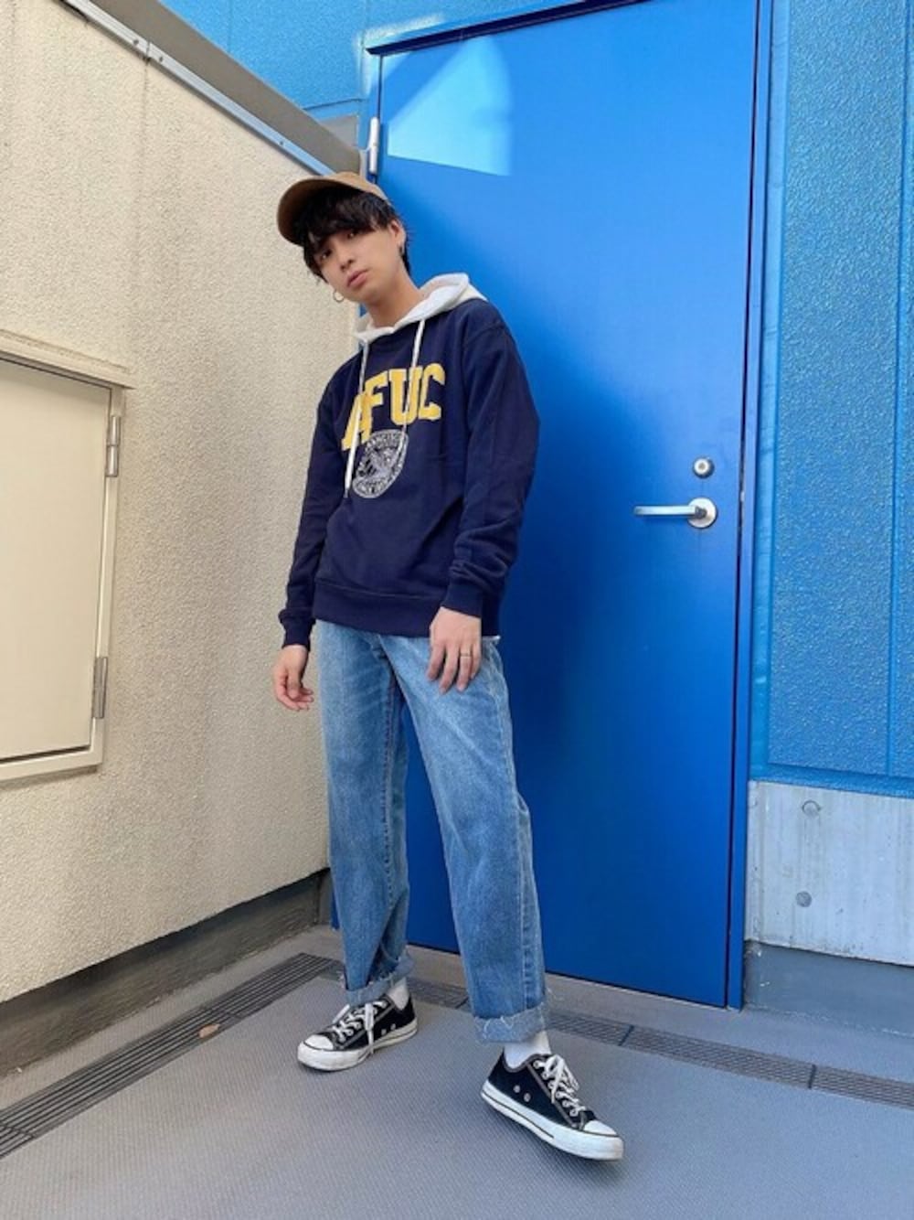 WEGO(WEGO STAFF)のスウェット「WEGO/カレッジプリントプルオーバー」を使ったコーディネート