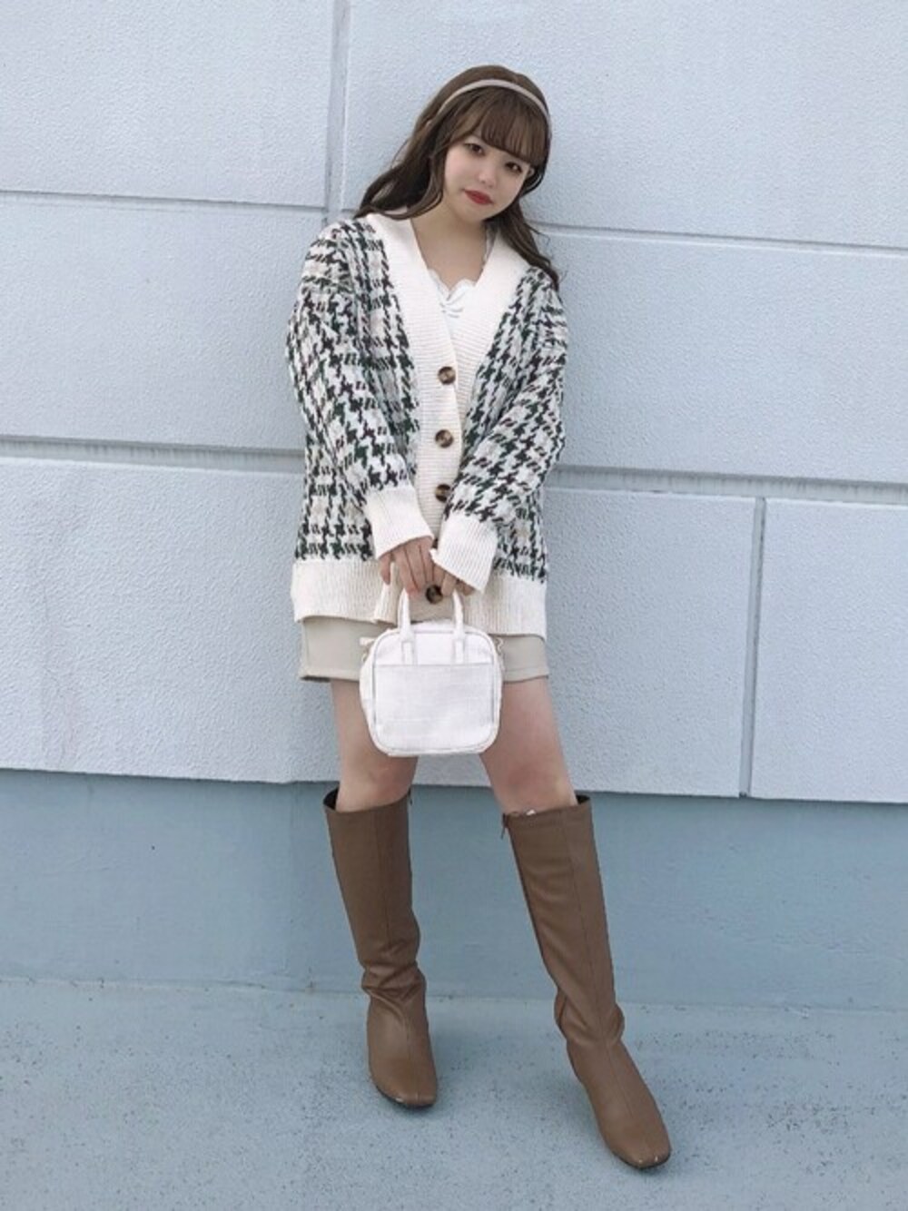 WEGO(WEGO STAFF)のカーディガン/ボレロ「WC/千鳥柄カーディガン」を使ったコーディネート