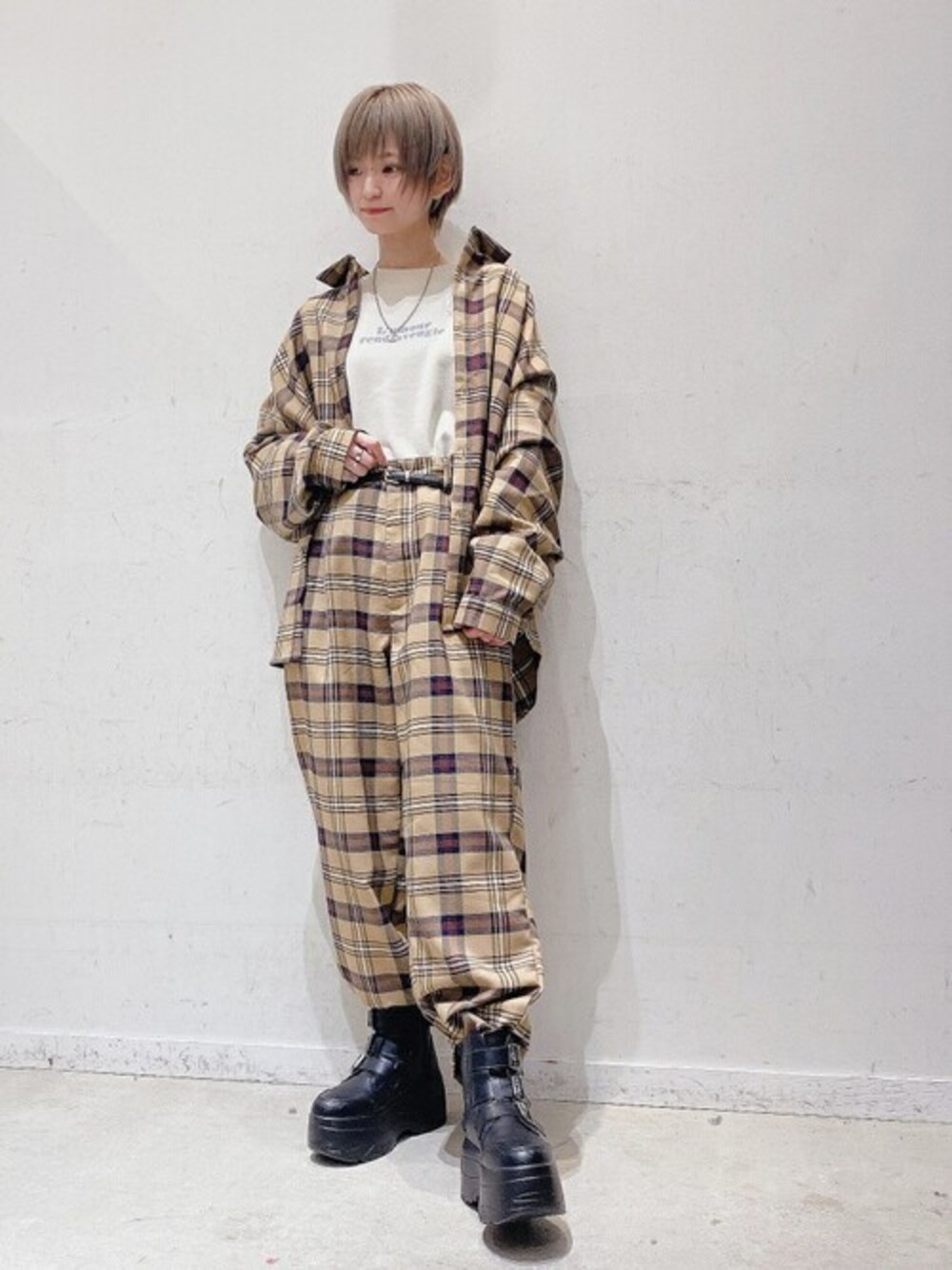WEGO(WEGO STAFF)のスラックス「WEGO/【セットアップ対応商品】TRチェックセミワイドスラックス」を使ったコーディネート