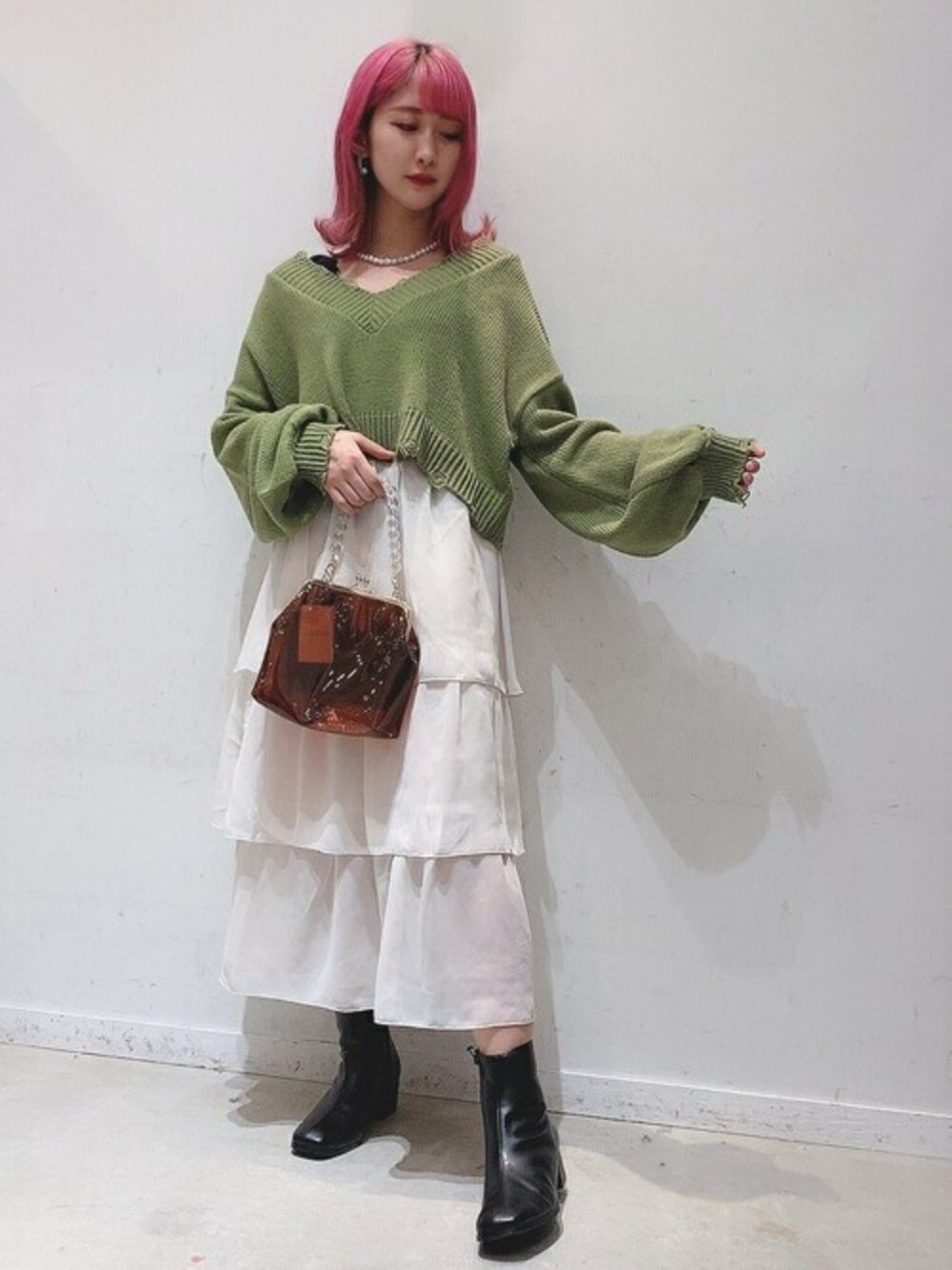 ■Instagram @vale_1i1y 1個前の投稿のロンTとセットのダメージニットをニット単体で着てみたんだ!♥ 襟元のVラインがデコルテを綺麗に見せてくれて可愛いから、ブラックのフリルロンTをチラ見せさせて、 セットのロンTでは発揮できないコーデにしたよ!!! 首元が空いているコーデには、パールネックレスみたいな存在感あるアクセサリーがおすすめ! 春トレンドキーワード第一位"ティアード"のスカートもかわいいでしょ! ふわふわで歩く度気分上がるよ〜↑ ★毎月5のつく日は「10%OFF」WEGOZOZOTOWN限定★ 気になったアイテムはぜひお気に入り登録を♪