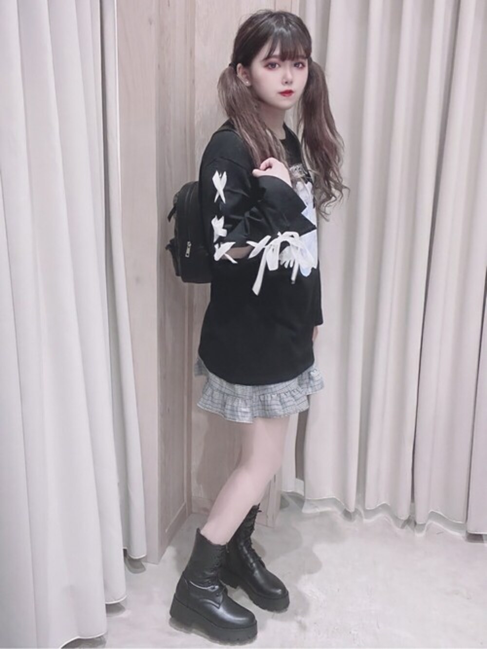 WEGO(WEGO STAFF)のTシャツ/カットソー「WEGO/レースアップスリーブクマロンT」を使ったコーディネート