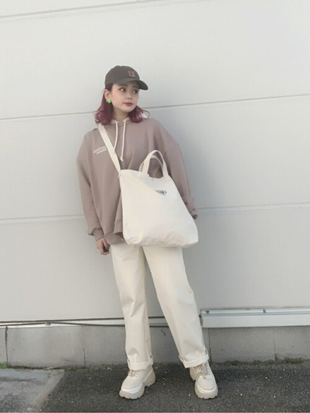 WEGO(WEGO STAFF)のパーカー「WEGO/ヘビーウエイトロゴ刺繍ビッグスウェパカ」を使ったコーディネート