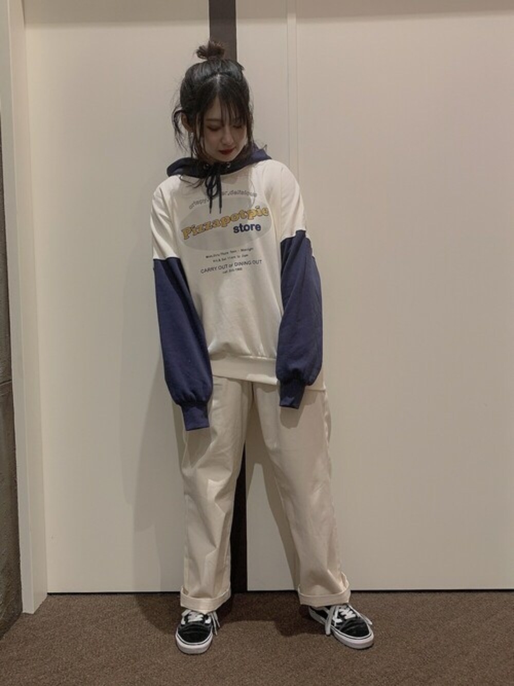WEGO(WEGO STAFF)のパーカー「WEGO/pizzapotpieカラーパーカー」を使ったコーディネート