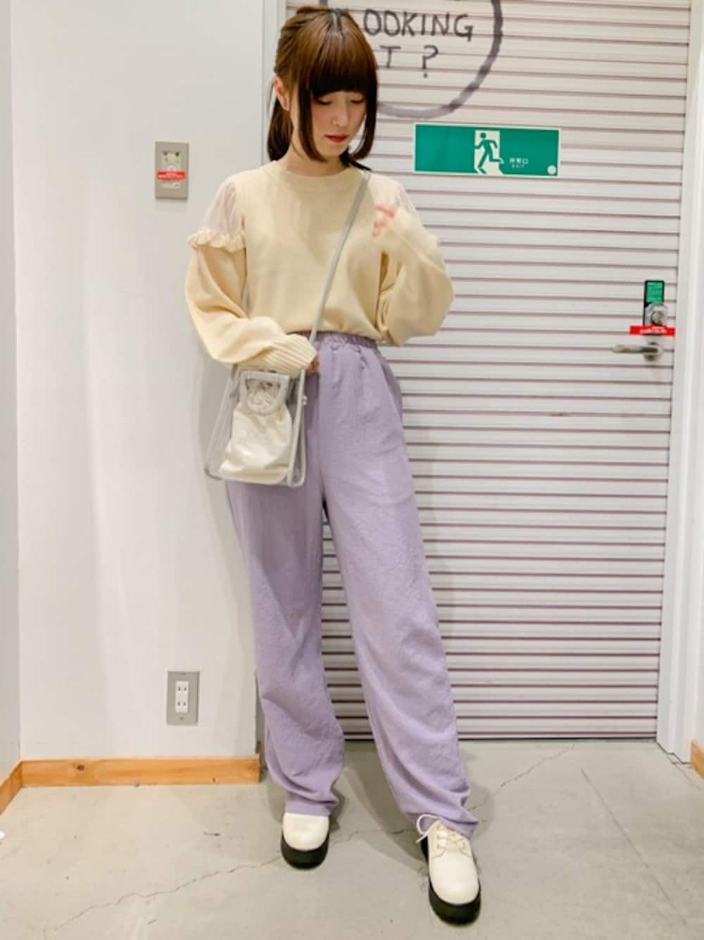 WEGO(WEGO STAFF)のニット/セーター「WEGO/チュールショルダーフリルニット」を使ったコーディネート
