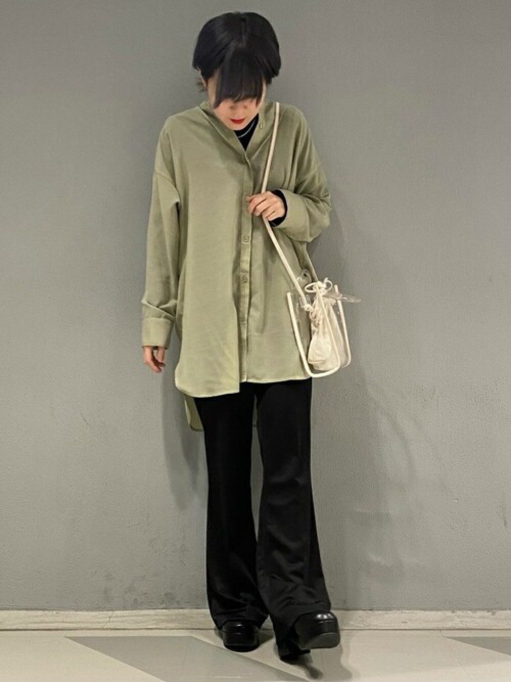 WEGO(WEGO STAFF)のシャツ/ブラウス「WEGO/シアーバンドカラールーズシャツ」を使ったコーディネート
