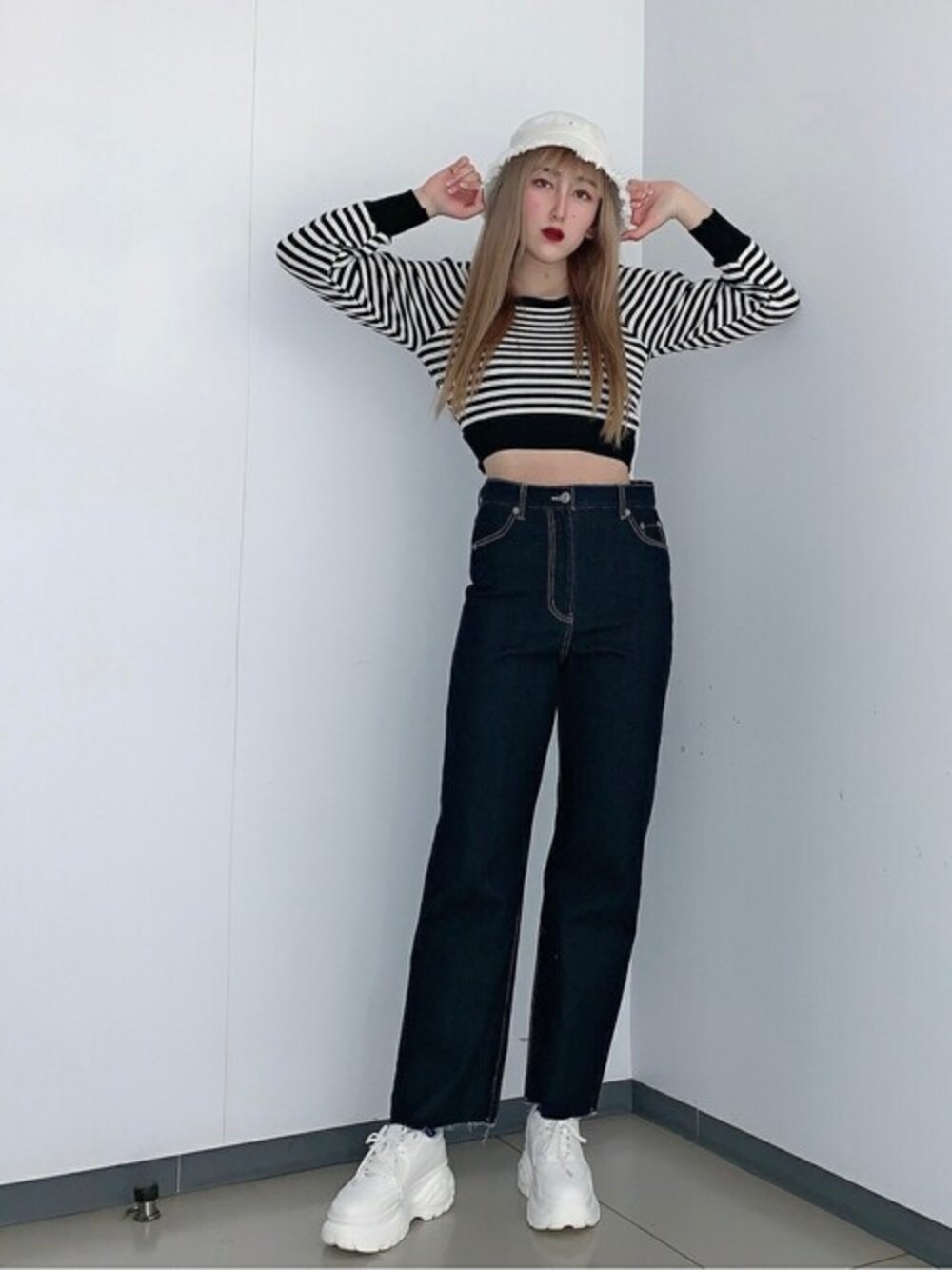 WEGO(WEGO STAFF)のニット/セーター「WC/スクエアネックボーダーニット」を使ったコーディネート