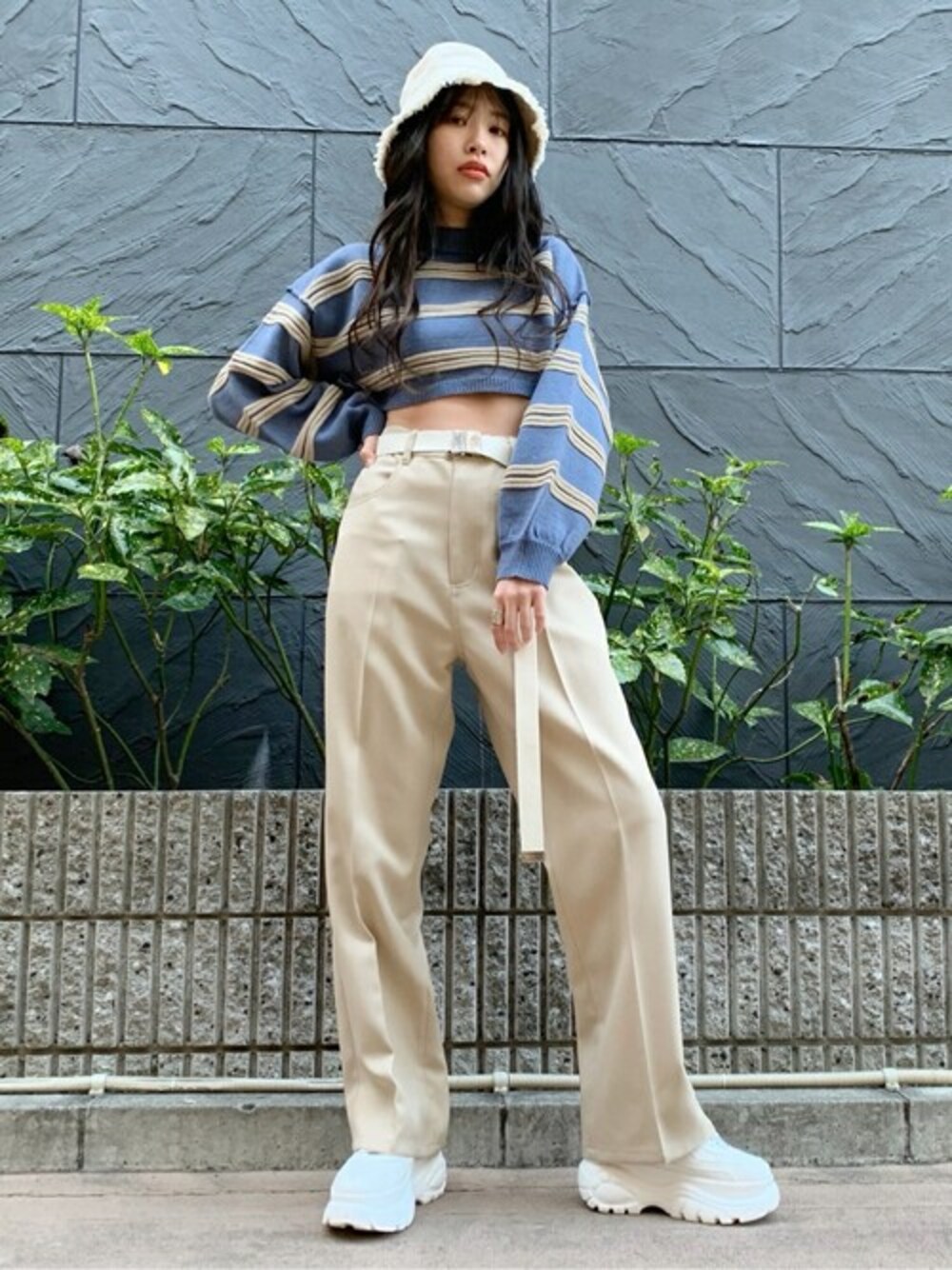WEGO(WEGO STAFF)のニット/セーター「WEGO/ボーダーショートニット」を使ったコーディネート
