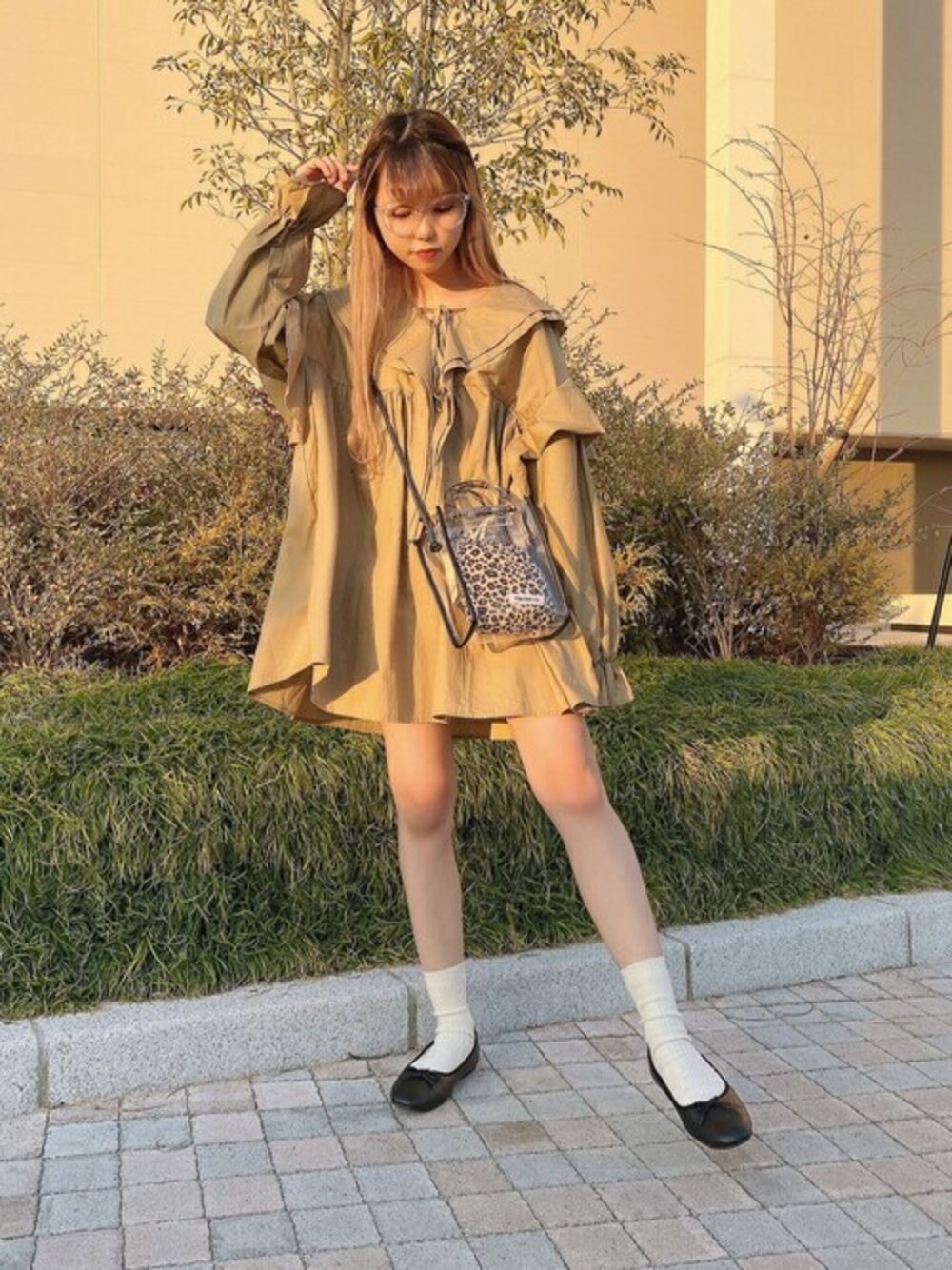 WEGO(WEGO STAFF)のショルダーバッグ「WEGO/パイピングハンドルクリアショルダー」を使ったコーディネート