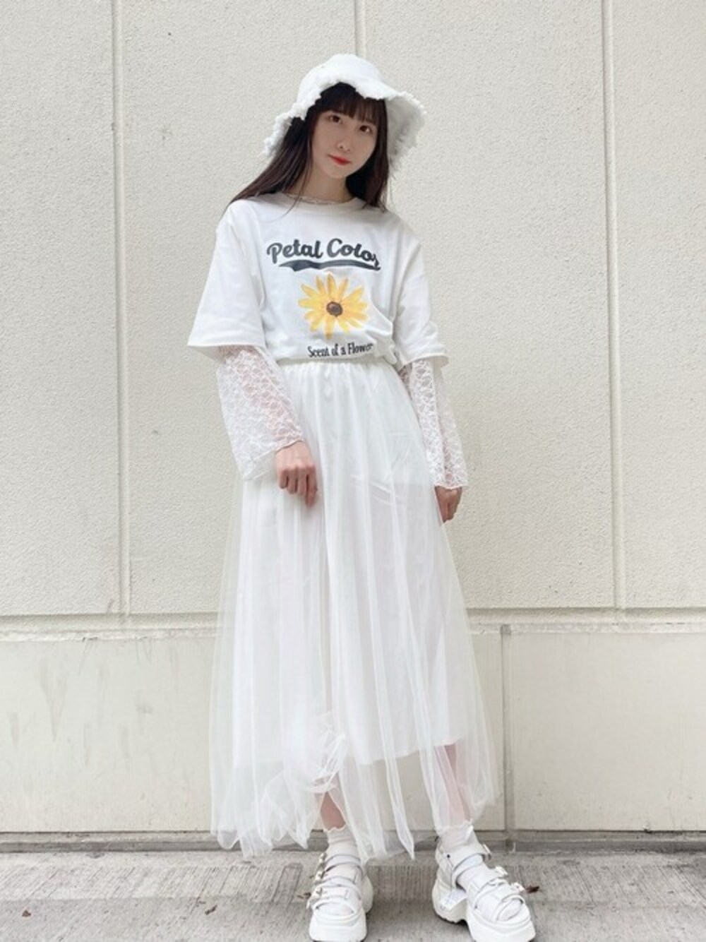 WEGO(WEGO STAFF)のスカート「WEGO/チュールボリュームロングスカート」を使ったコーディネート