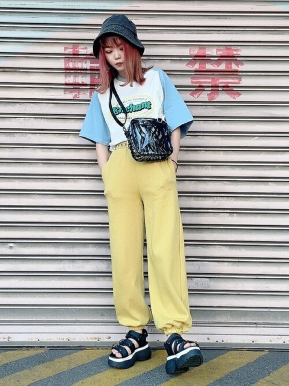 WEGO(WEGO STAFF)のショルダーバッグ「WEGO/パイピングスクエアクリアショルダーバッグ」を使ったコーディネート