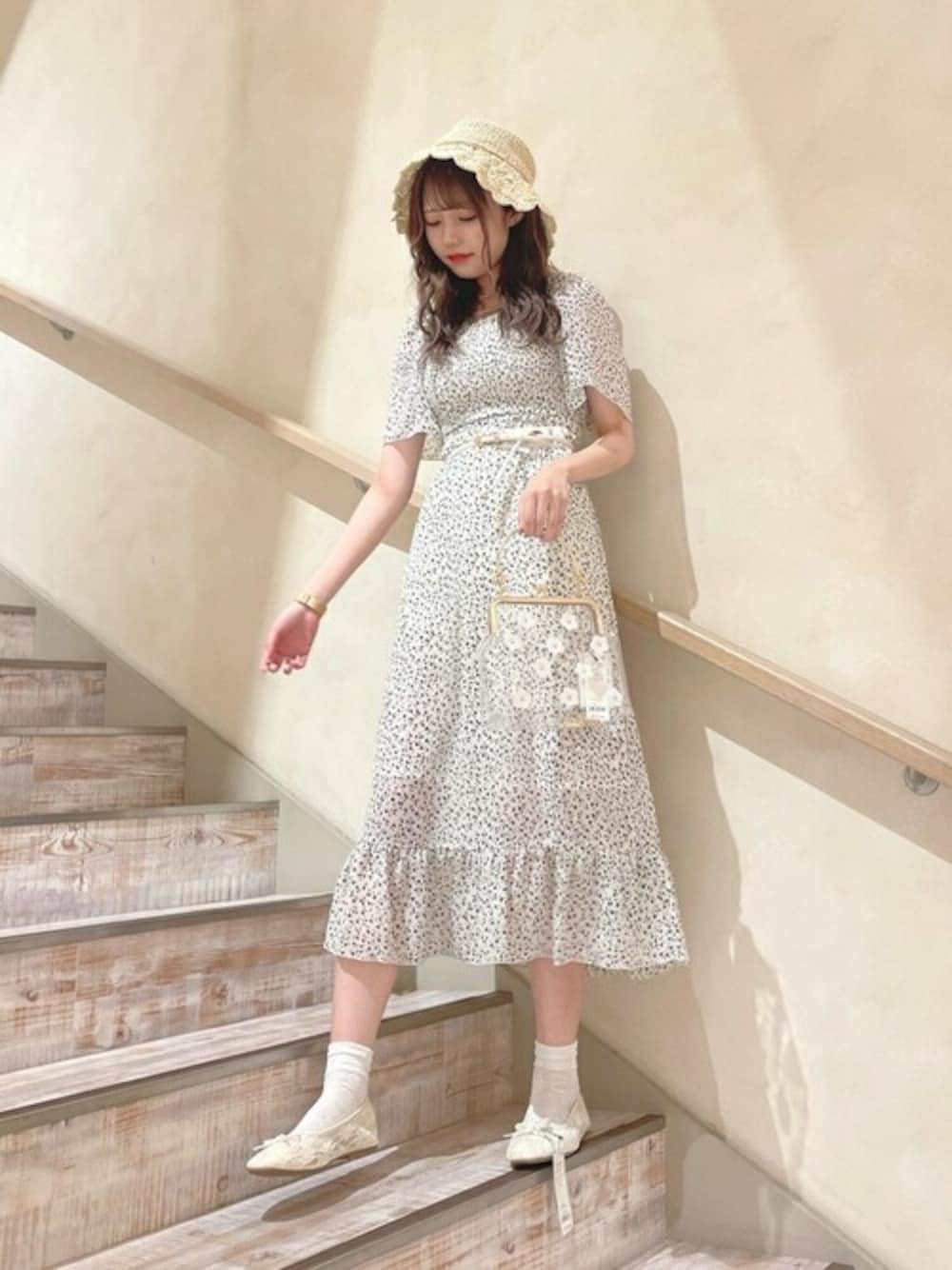 WEGO(WEGO STAFF)のワンピース「WEGO/シャーリングフレアスリーブワンピース」を使ったコーディネート