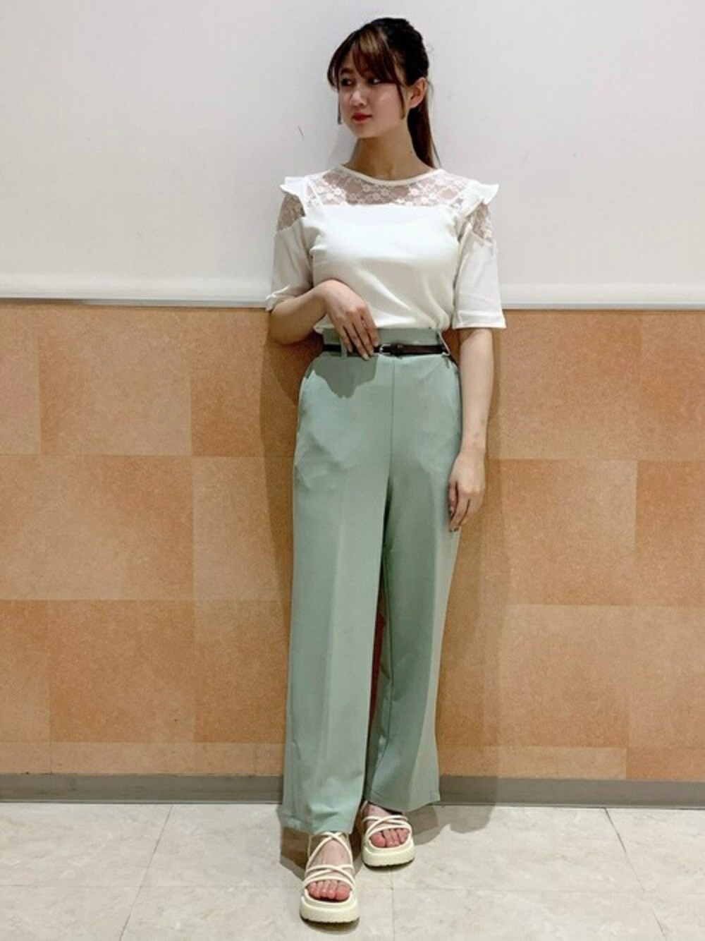 WEGO(WEGO STAFF)のTシャツ/カットソー「WEGO/オープンショルダーレースフリルT」を使ったコーディネート