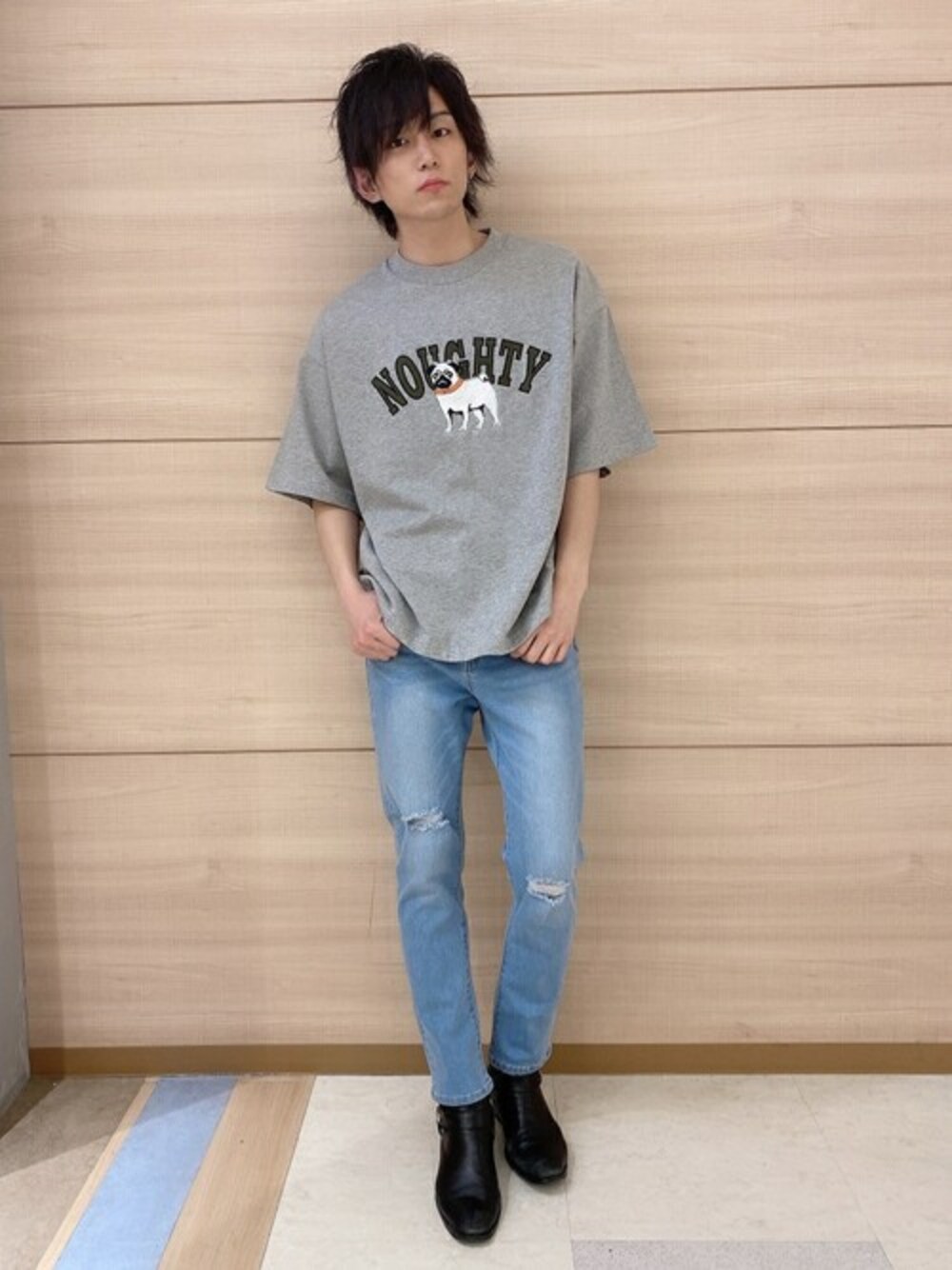 WEGO(WEGO STAFF)のデニムパンツ「WEGO/ストレッチ ダメージデニムスキニーパンツ」を使ったコーディネート