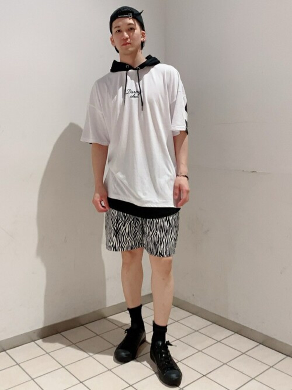 WEGO(WEGO STAFF)のパーカー「WEGO/ストレートラインレイヤード半袖プルパーカー」を使ったコーディネート