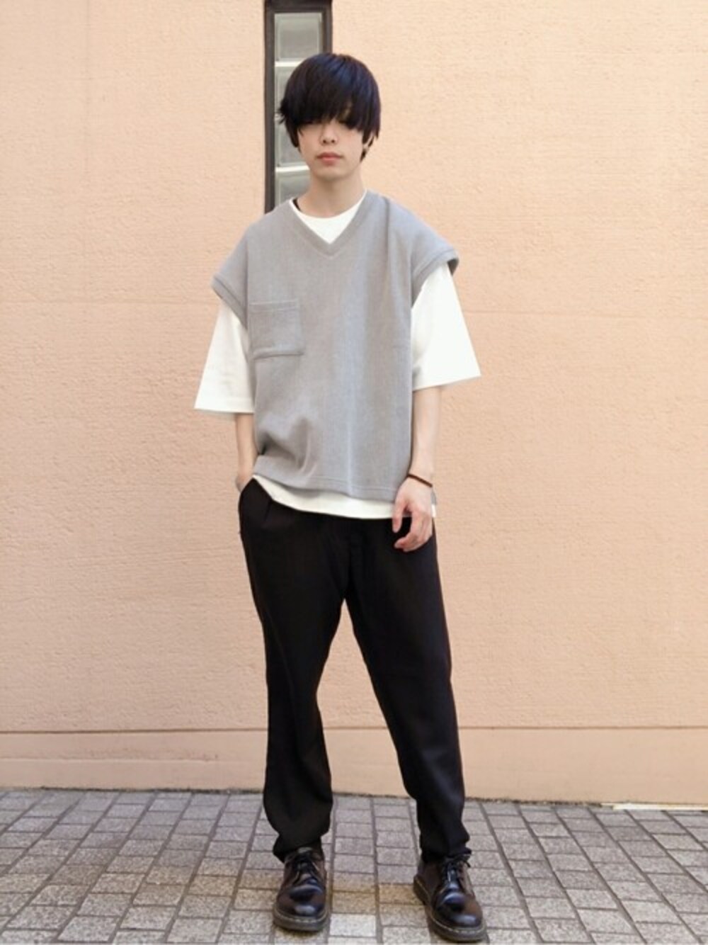 WEGO(WEGO STAFF)のアンサンブル「WEGO/【2点セット】アンサンブルニットライクVネックベスト」を使ったコーディネート