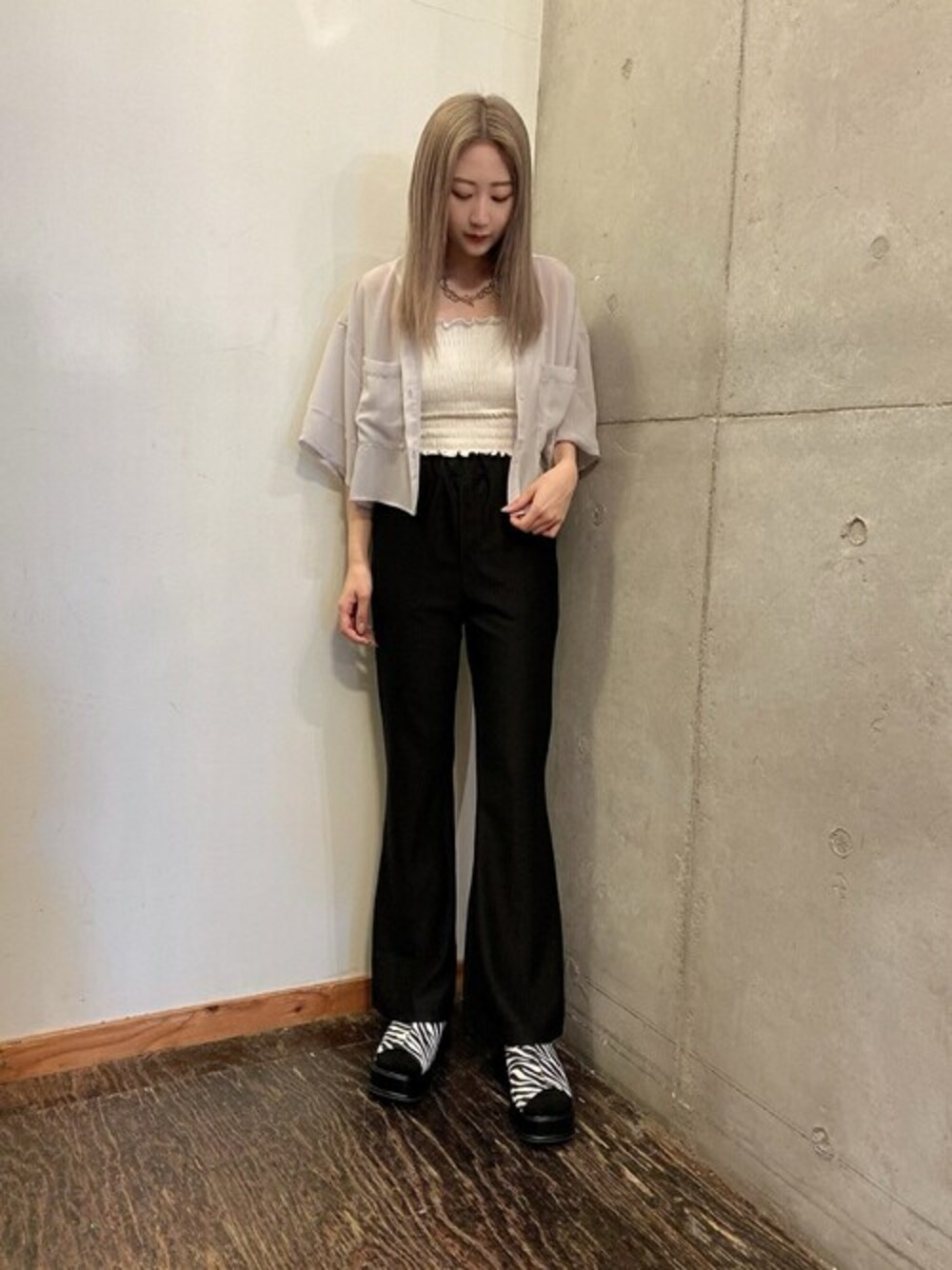 WEGO(WEGO STAFF)のシャツ/ブラウス「DISPARK /バンドカラーショートシャツ」を使ったコーディネート