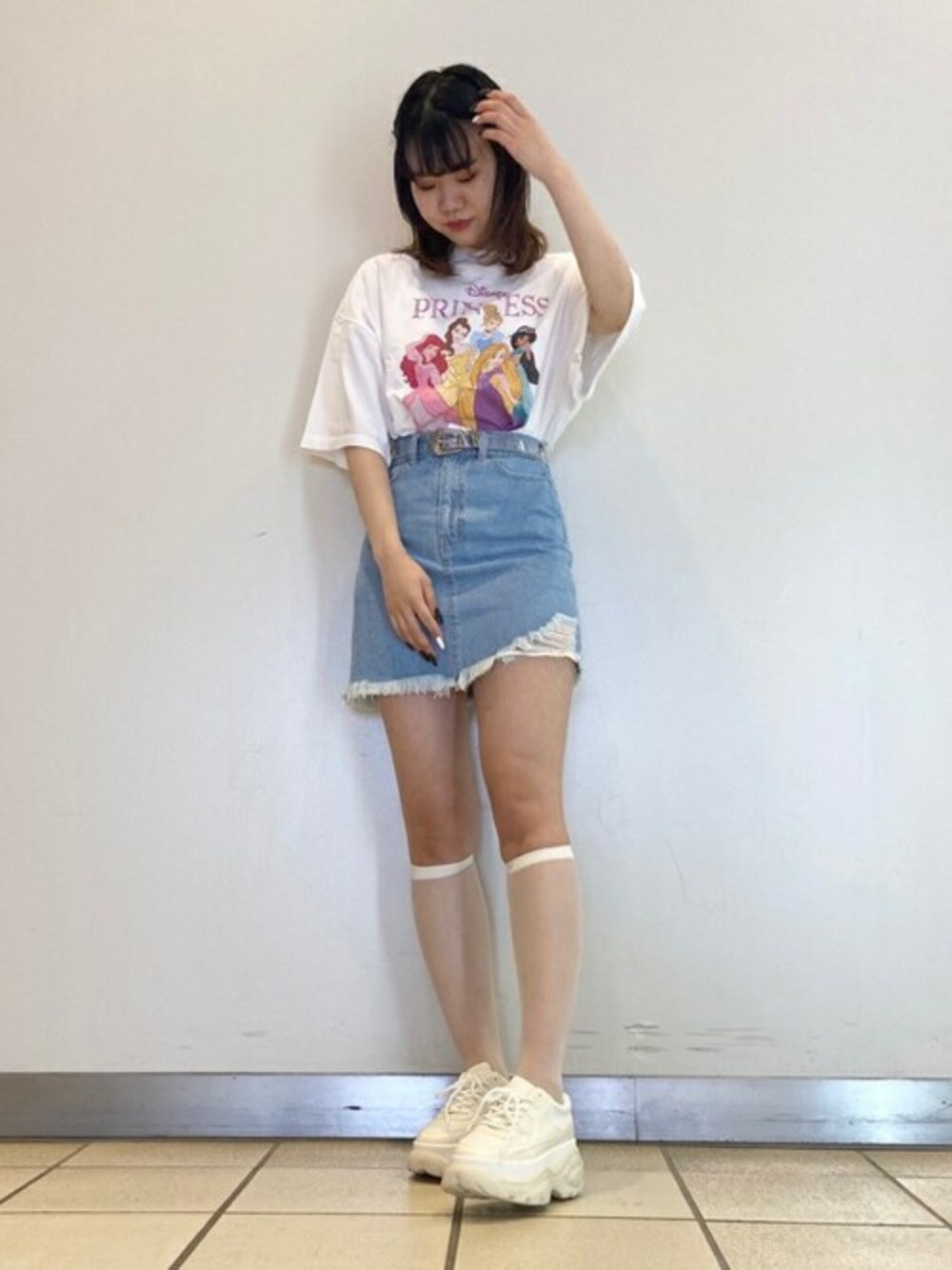 WEGO(WEGO STAFF)のデニムスカート「WEGO/ダメージミニスカート」を使ったコーディネート