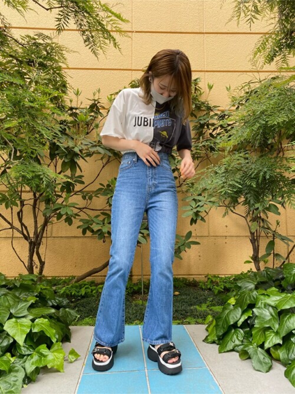 WEGO(WEGO STAFF)のTシャツ/カットソー「WEGO/アシメカッティングTシャツ」を使ったコーディネート