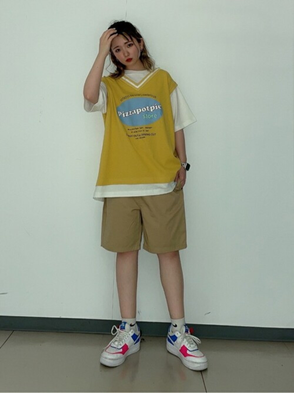 WEGO(WEGO STAFF)のTシャツ/カットソー「WEGO/pizzapotpieレイヤードTシャツ」を使ったコーディネート