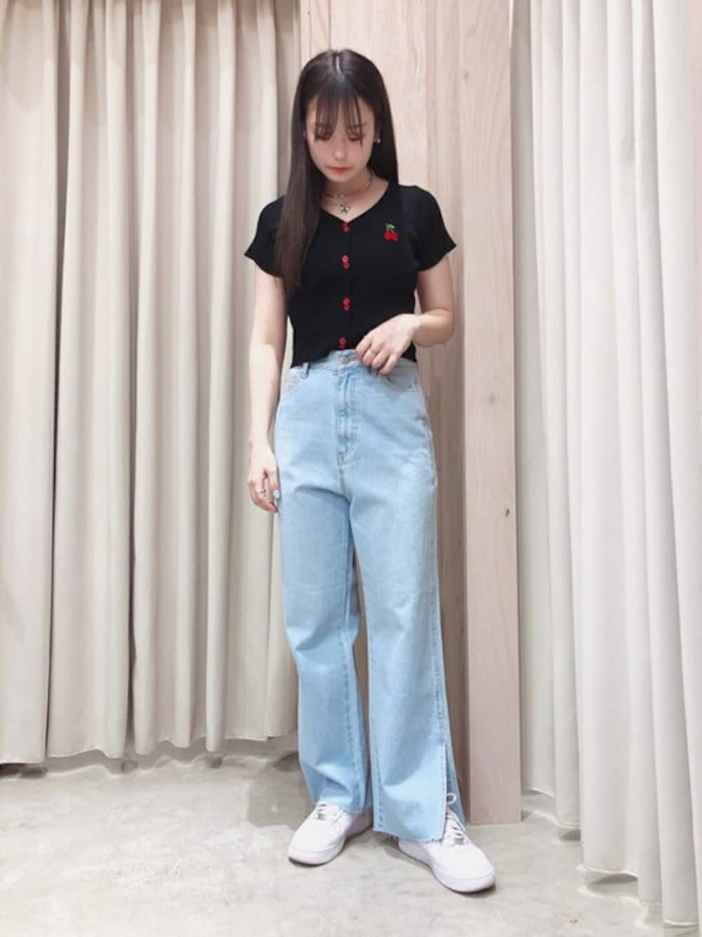 WEGO(WEGO STAFF)のデニムパンツ「WEGO/サイドスリットストレートパンツ」を使ったコーディネート