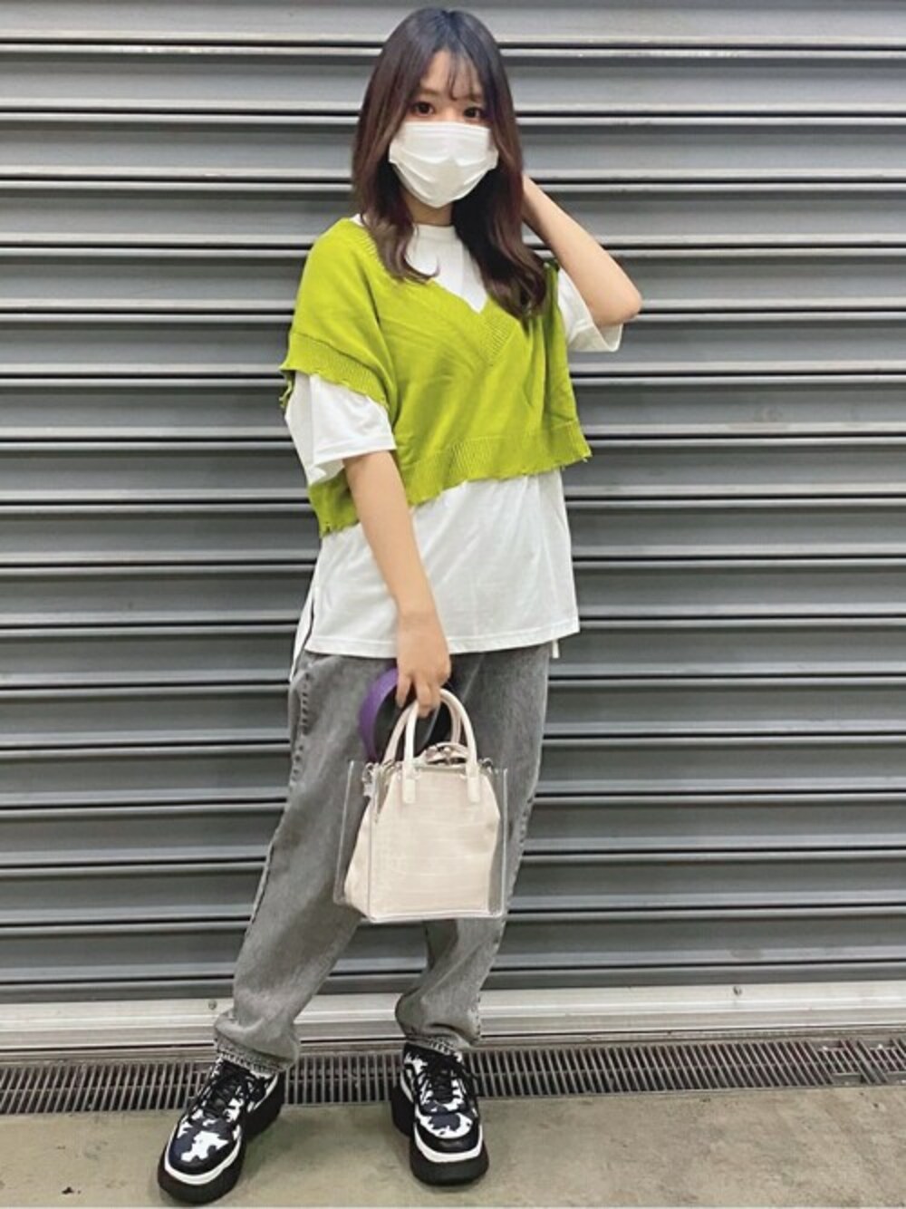 WEGO(WEGO STAFF)のベスト「WEGO/【2点セット】Tシャツセットダメージショートニットベスト」を使ったコーディネート
